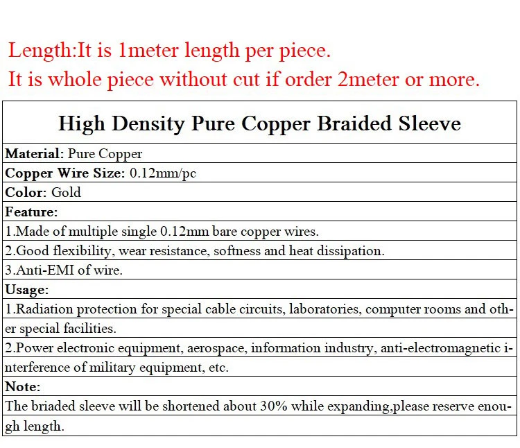 Funda trenzada de cobre chapado en estañado, 2M/5M, 2mm ~ 30mm, funda de Metal expandible, Cable de alambre de señal de cribado blindado