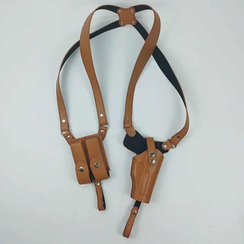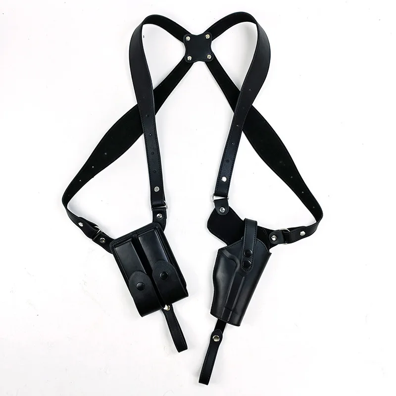 Fundas de pistola de hombro táctico, funda de pistola de transporte oculta ajustable, funda de pistola de cuero PU con doble bolsa de cargador Airsoft