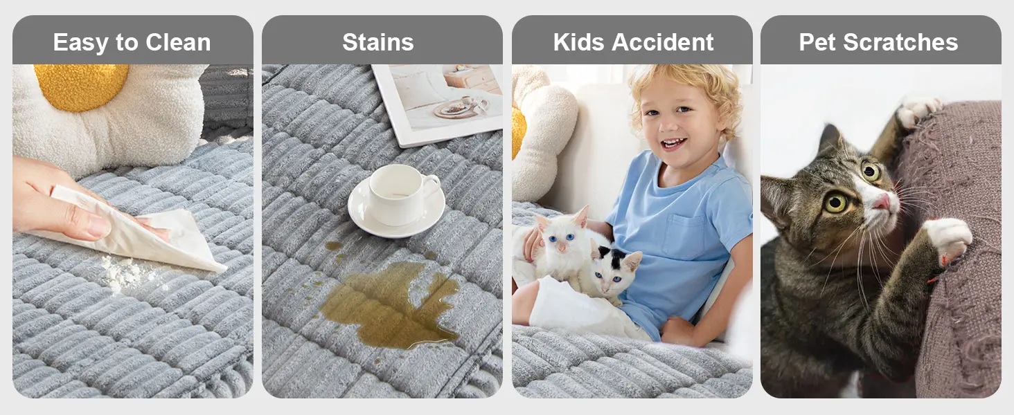 【Tela de pana suave y gruesa】 La superficie de la funda del sofá está hecha de pana, que es suave y cómoda, no se desprende ni se decolora.La capa intermedia está acolchada con un acolchado de algodón, lo que la hace más gruesa que otros materiales de fundas de sofá.Las fundas de sofá son versátiles; Se pueden utilizar no solo como cojín de sofá sino también como tapetes de juego, tapetes de dormitorio, tapetes, tapetes de banco de ventana y más.【Diseño antideslizante】Nuestra gruesa funda para sofá viene con partículas de silicona antideslizantes en la parte inferior, lo que garantiza que las fundas permanezcan seguras en su lugar mientras protege la superficie del sofá del desgaste, el desgarro y los daños de las mascotas.Ideales tanto para sofás de tela como de cuero, estas fundas proporcionan una combinación perfecta de estabilidad y estética. Mejore la decoración de su hogar: la funda gruesa para sofá viene en una variedad de diseños y colores elegantes, perfectos para agregar un toque decorativo a su espacio vital y darle a su sofá un aspecto nuevo y fresco.Estas fundas para asientos de sofá no solo mantienen su hogar ordenado y hermoso, sino que también crean un ambiente acogedor y acogedor.Disfrute de la comodidad de relajarse en casa con estas elegantes y funcionales fundas de sofá, haciendo que su tiempo libre sea aún más agradable y cálido. 【Fácil instalación y cuidado】Nuestras fundas para sofá están diseñadas para una fácil instalación: simplemente coloque la funda en su sofá, no se requieren accesorios adicionales.Estas fundas de sofá se pueden lavar a máquina en agua fría;Lávelos por separado en un ciclo suave con un detergente suave para ropa.Secar en secadora a fuego lento y evitar usar lejía.