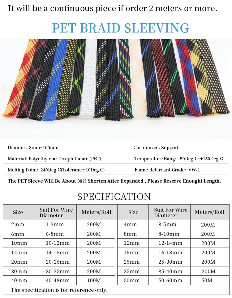 Fundas trenzadas PET aisladas, envoltura de Cable expandible de alta densidad, Protector de envoltura de cables, 1/2/3/5/10/20/30/50M, 12mm