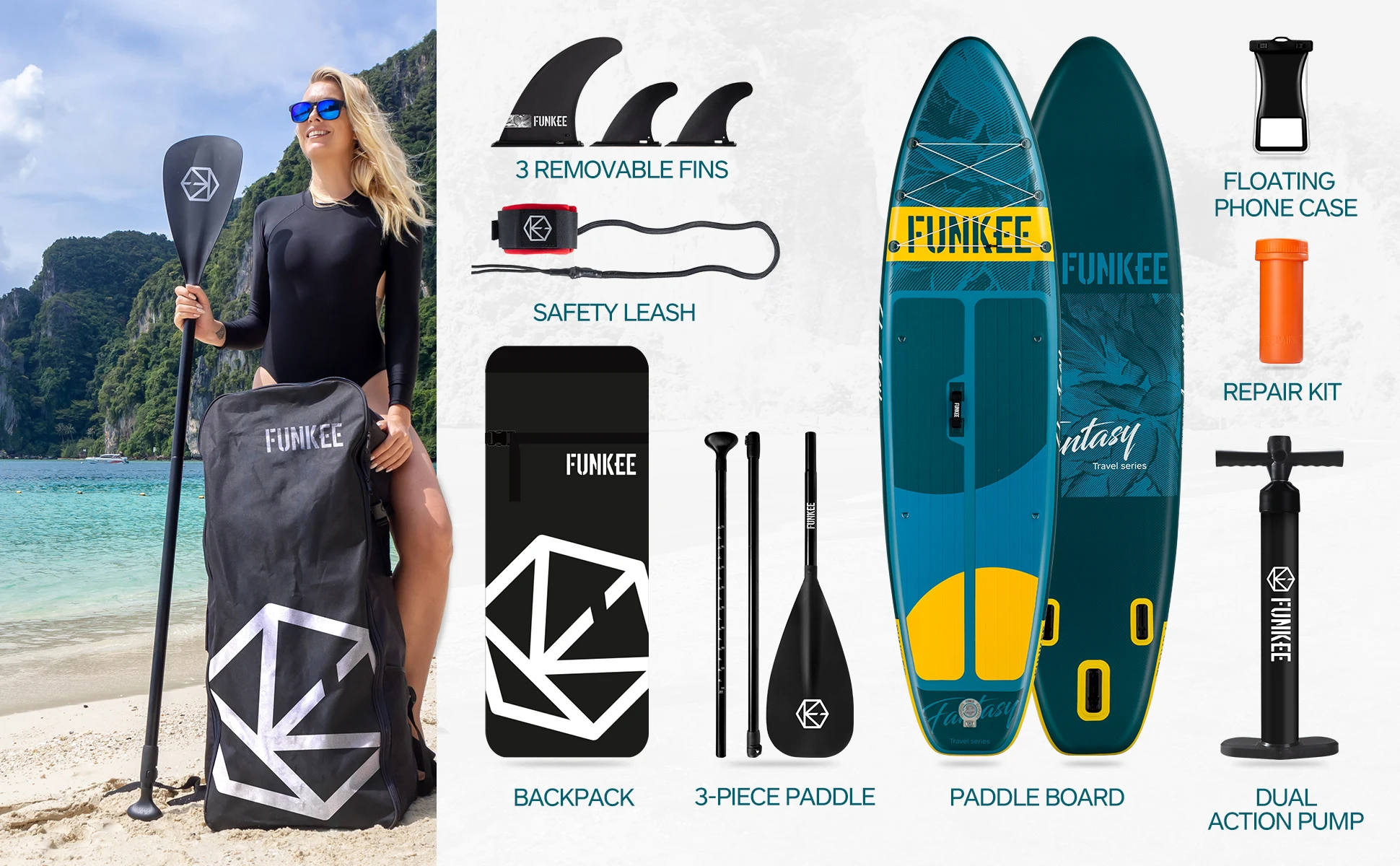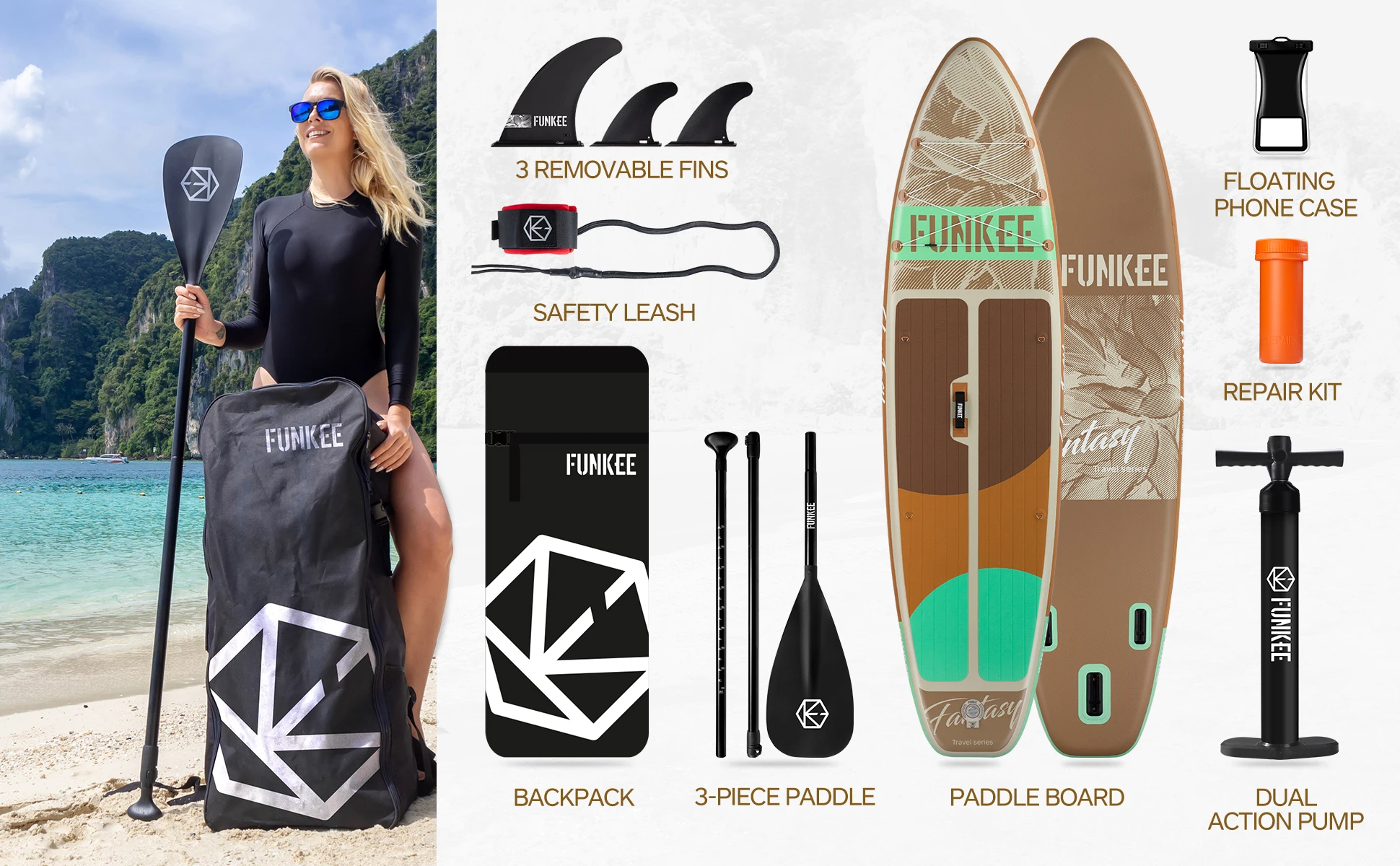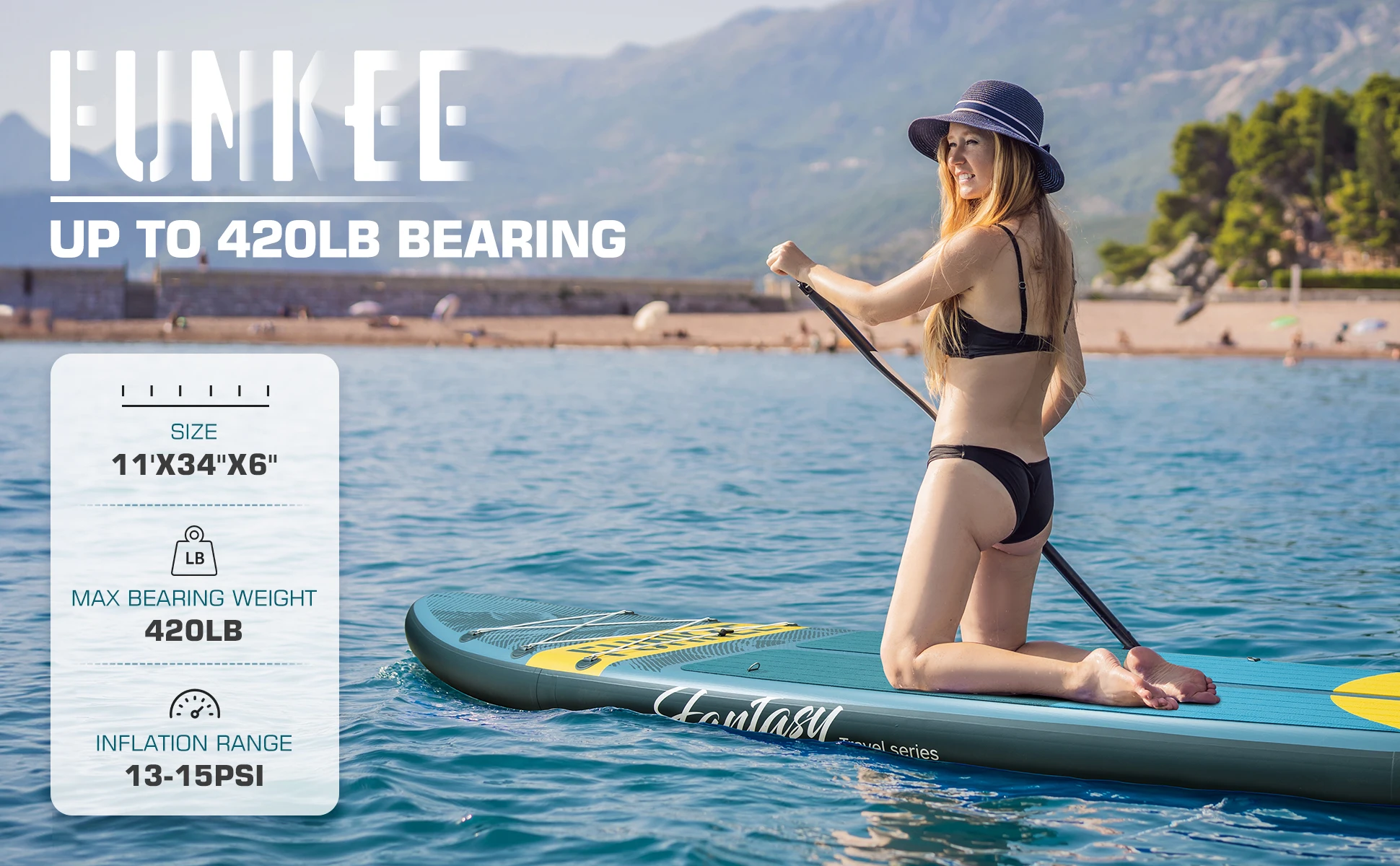 FUNKEE-Tabla de Paddle inflable para adultos, deportes acuáticos, SUP, 3 estilos con accesorios, 11 '× 34 "× 6"