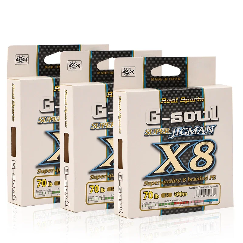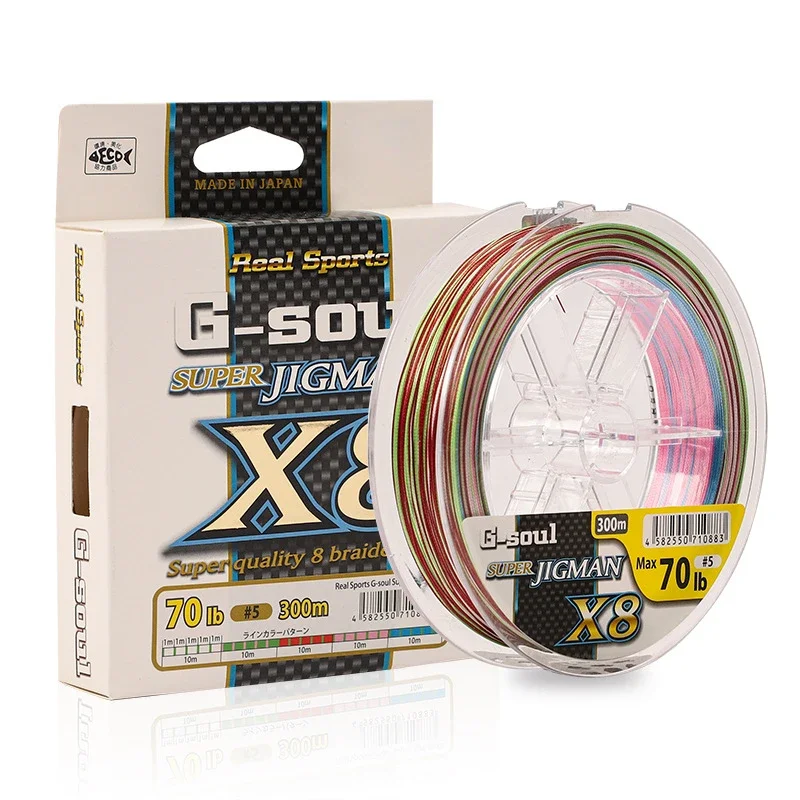 G-SOUL X8 JIGMAN 8 trenzado, sedal de PE multicolor de alta resistencia, carrete de pesca de carpa, 200M, 300M, nuevo, Original de Japón