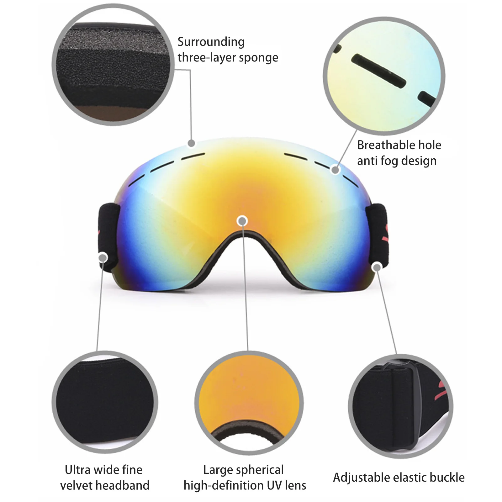Adjustable Strap for Comfort: With a soft and adjustable strap, these snow goggles provide a secure and comfortable fit for both men and women, ensuring that they stay in place even during intense movements.