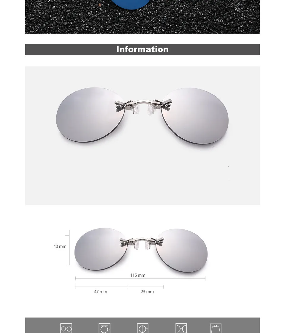 Gafas de sol con Clip en la nariz para hombre, Mini gafas de sol redondas Vintage, sin montura, UV400, anti-uvb, para ciclismo