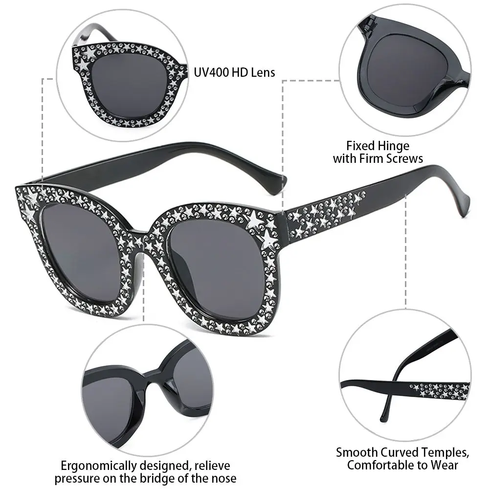 * WIDE APPLICATIONS - The charming oversize square sparkling sunglasses are suitable for women and men. You can wear them for various occasions, such as shopping, traveling, parties, taking photos, dating, gathering, beach party or just for daily wear. It can also be worn for Halloween, Christmas, cosplay, or stage performance to match other costume accessories. It can be worn all year round and it is also the best gift for family or friends. They will like it very much.