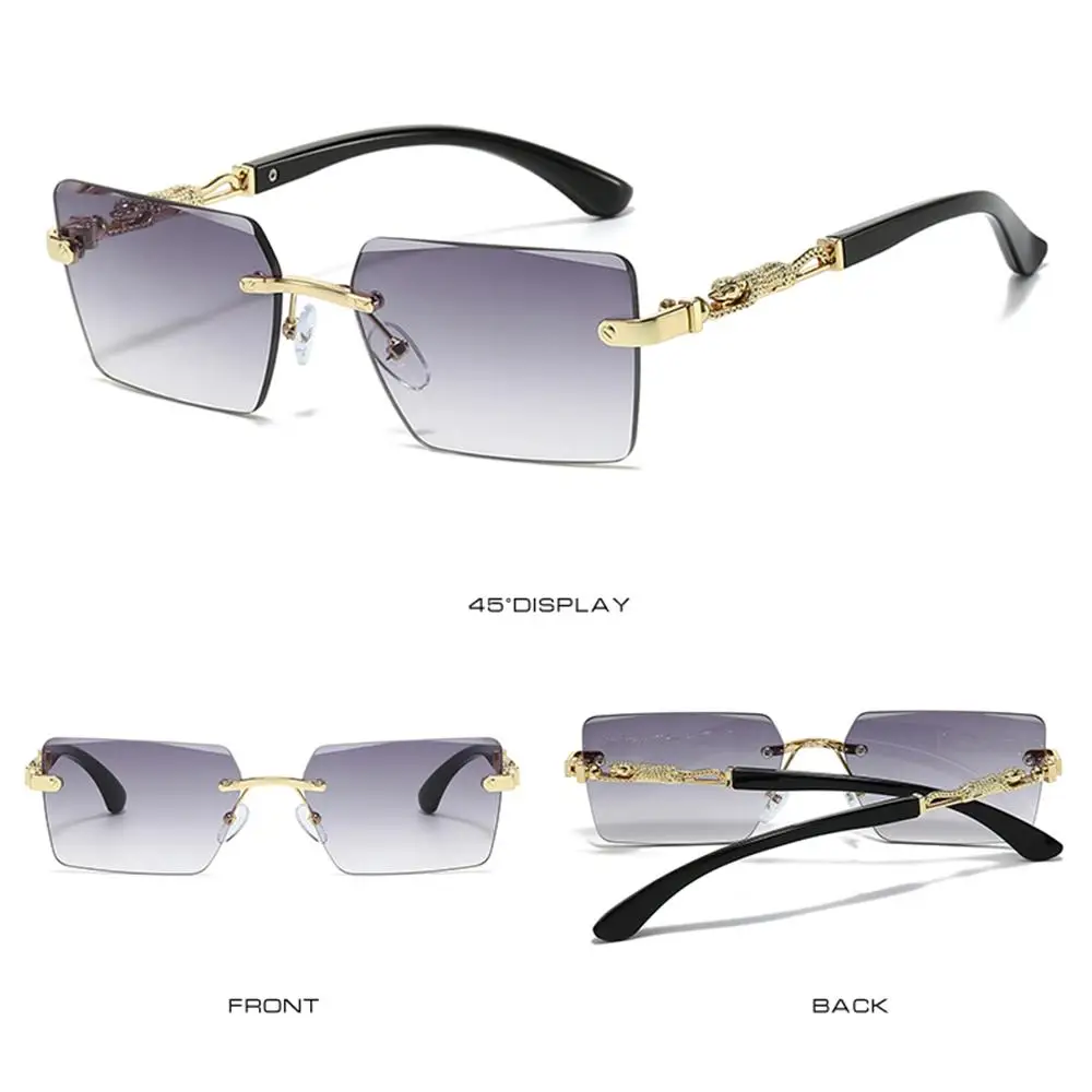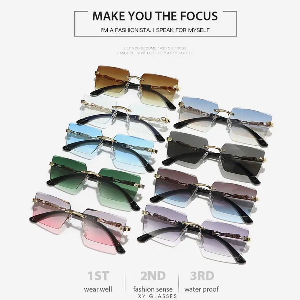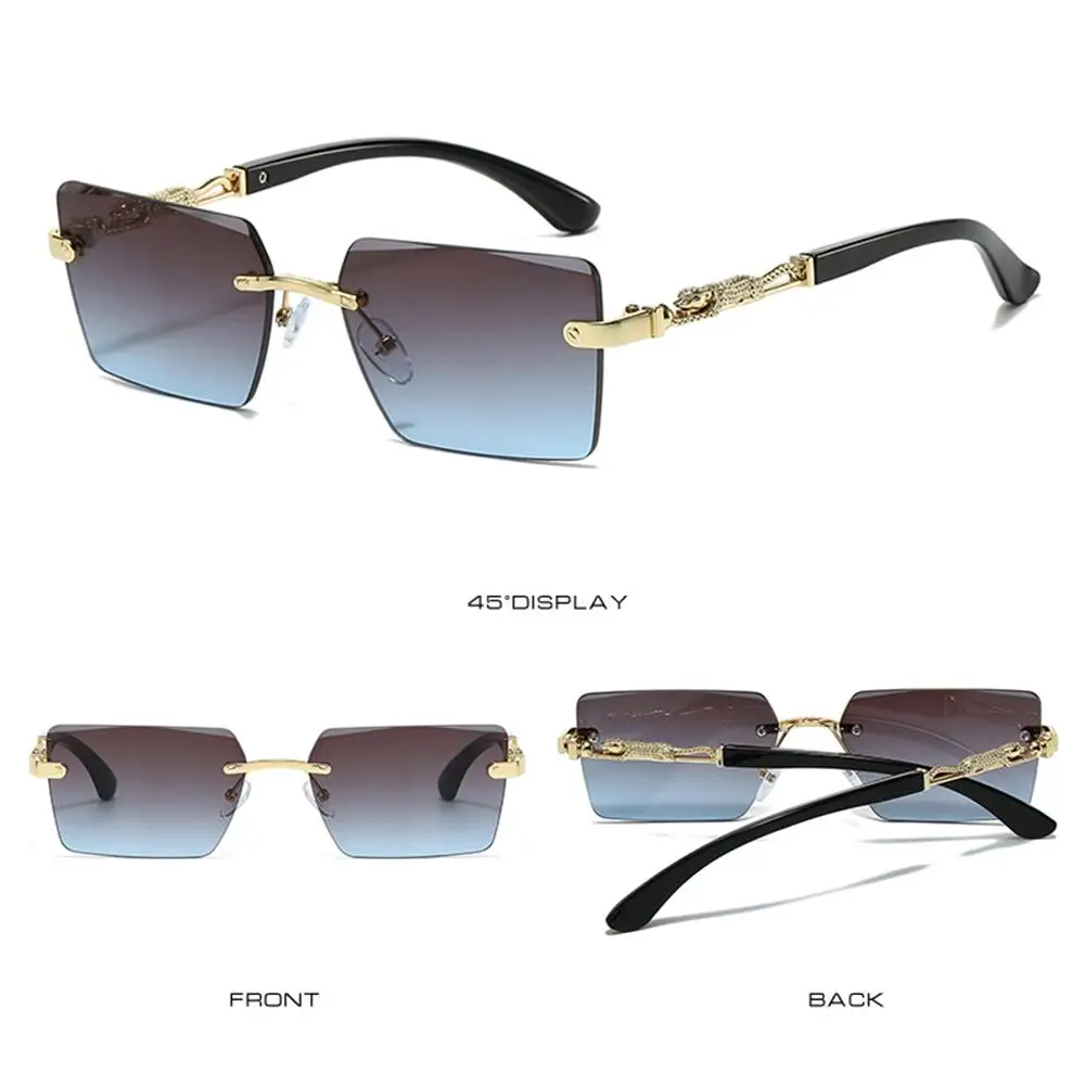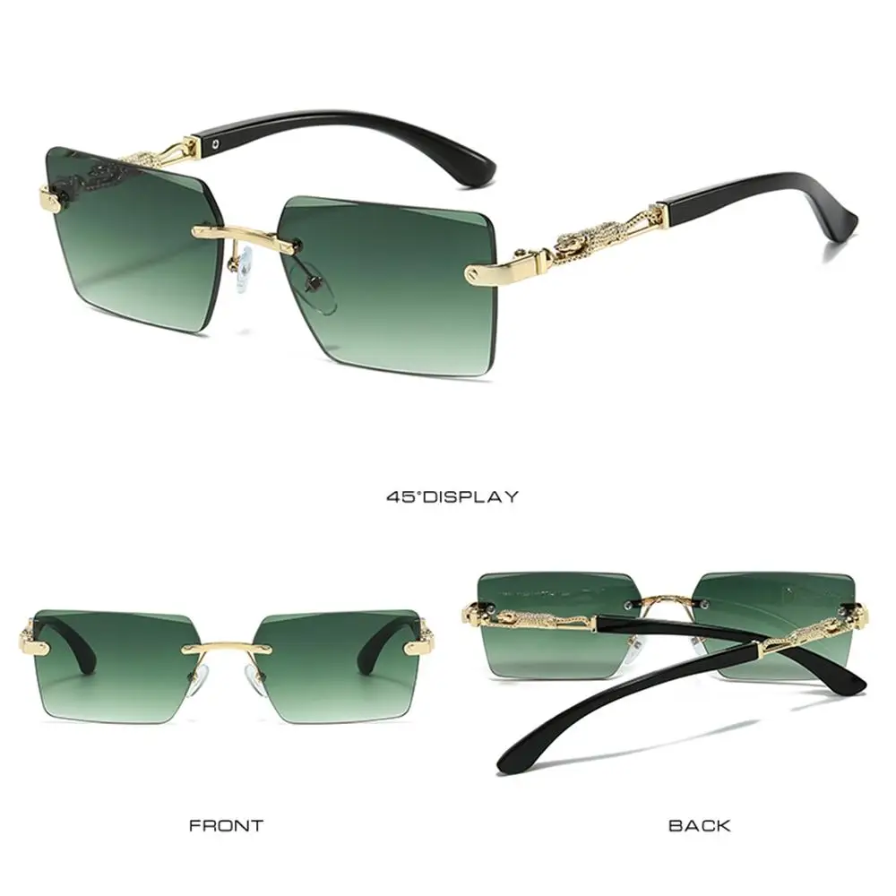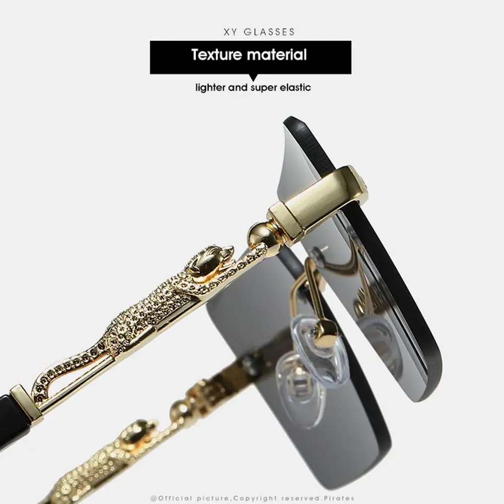 Nombre del producto: tonos decorativos de leopardo sin montura Estilo: moderno, Retro Color: 9 colores para su elección Material de la lente: policarbonato Material del marco: PC, Metal Tipo de polarización: No polarizado Tamaño del producto: ancho Total: 144mm (5,67 pulgadas) de la lente Ancho: 58mm (2,28 pulgadas) de la lente Altura: 39mm (1,54 pulgadas) Ancho del puente nasal: 17mm (0,67 pulgadas) de las patillas Longitud: 140mm (5,51 pulgadas) Peso: 30g (1,06 oz) incluido Paquete: 1 x Gafas de sol Nota: 1. Hay una diferencia de 2 a 3% según la medición manual. Por favor, compruebe la talla cuidadosamente antes de comprar el artículo. 2. Tenga en cuenta que una ligera diferencia de color debe ser aceptable debido a la luz y la pantalla.