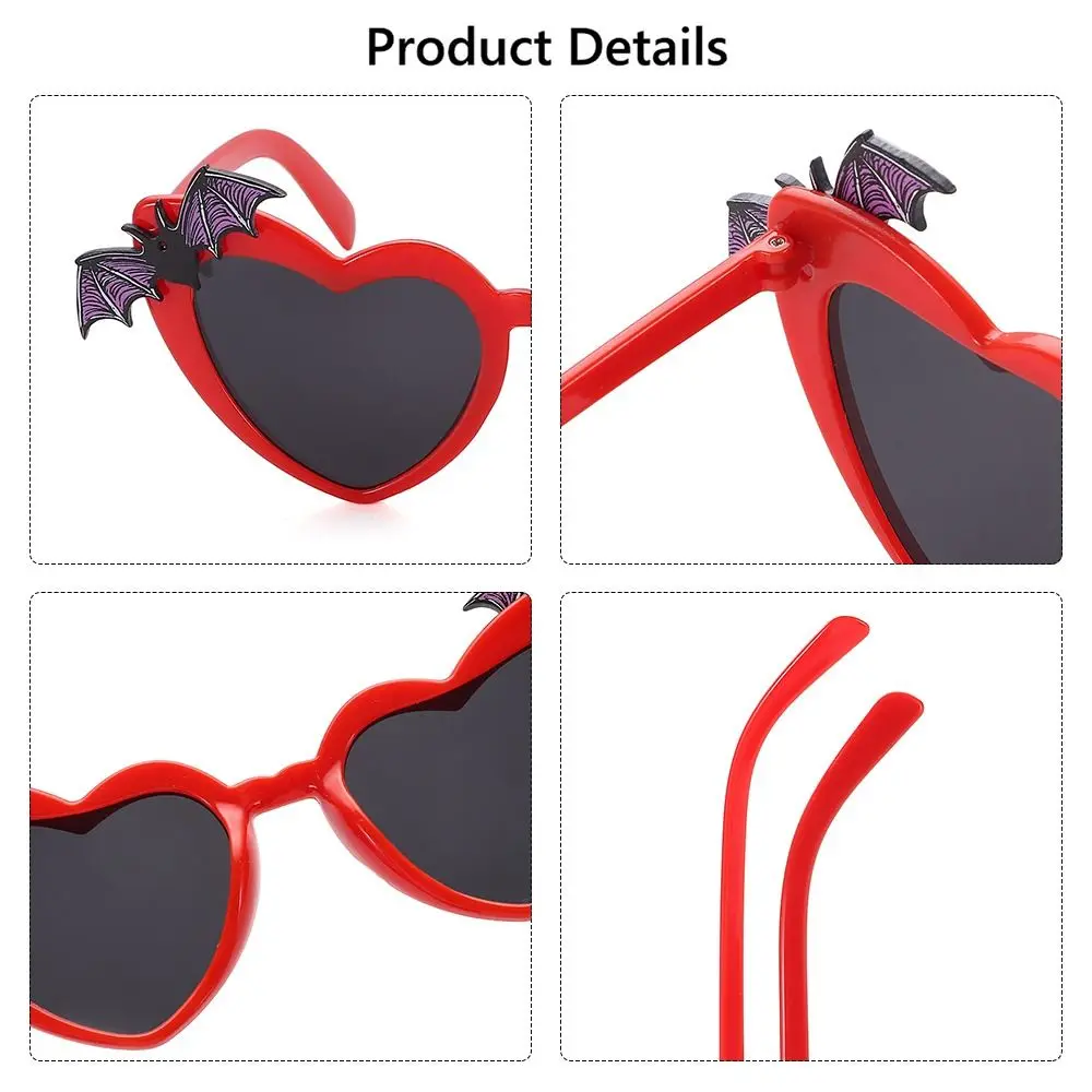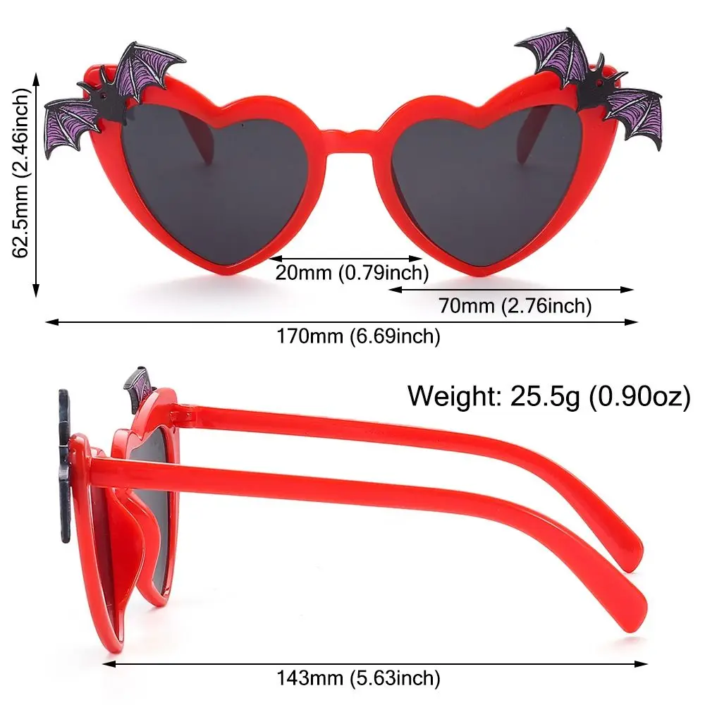 Nombre del producto: gafas de sol con decoración de alas de murciélago en forma de corazón Estilo: moda, moda retro Color: rojo, negro de la lente Material: policarbonato Material del marco: PC Tipo de polarización: No polarizado Tamaño del producto: ancho total: 170mm (6,69 pulgadas) Ancho del marco: 70mm (2,76 pulgadas) Altura del marco: 62,5mm (2,46 pulgadas) Ancho del puente nasal: 20mm (0,79 pulgadas) de las patillas Longitud: 143mm (5,63 pulgadas) Peso: 25,5G (0,90 oz) incluido Paquete: 1 x Gafas de sol Nota: 1. Hay una diferencia de 2 a 3% según la medición manual. Por favor, compruebe la talla cuidadosamente antes de comprar el artículo. 2. Tenga en cuenta que una ligera diferencia de color debe ser aceptable debido a la luz y la pantalla.