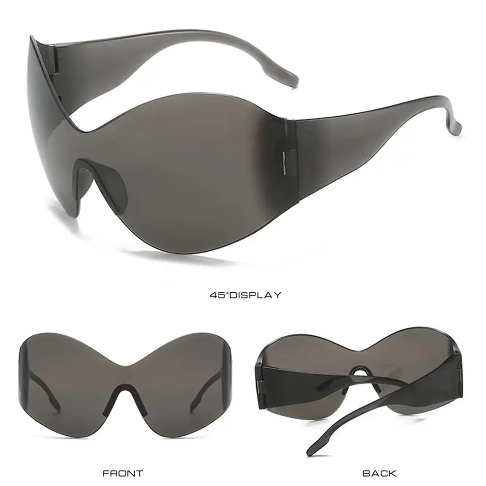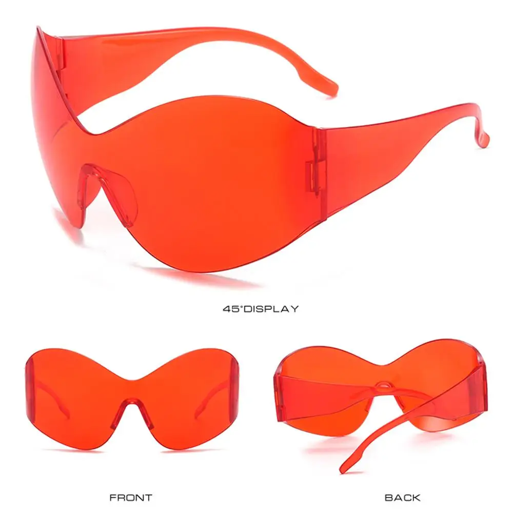 * Gafas de sol de gran tamaño para mujer: estas gafas de sol cuentan con una lente de una pieza sin montura de gran tamaño que proporciona una excelente protección ocular. El diseño envolvente y el puente nasal integrado garantizan un ajuste seguro y la moderna forma de mariposa te hace destacar entre la gente. * Gafas de sol sin montura estilo Y2K: abrace el ambiente elegante de los años 2000 con estas gafas de sol protectoras envolventes ligeras y de moda. Son perfectos para usar todo el día, ya sea en interiores o al aire libre, y son un accesorio elegante para las mujeres. Date un capricho a ti mismo o a alguien especial con este elegante regalo. * Gafas de sol futuristas sin montura: destaque en fiestas futuristas o eleve su estilo diario con estas gafas de sol de moda. Con su elegante diseño sin montura y detalles plateados, seguramente recibirán elogios diarios y mostrarán su personalidad única. * Lentes protectoras UV400: estas gafas de sol cuentan con lentes UV400 que reducen los reflejos, mejoran el contraste y protegen sus ojos de los dañinos rayos UV. Con esta protección UV incorporada, estas gafas de sol van más allá de ser solo un accesorio de moda, proporcionándote estilo y seguridad ocular. * Satisfacción garantizada: Su satisfacción es importante para nosotros. Si tiene algún problema o no está completamente satisfecho con su compra, póngase en contacto con nosotros. Nombre del producto: gafas de sol futuristas de gran tamaño Estilo: Y2K Estilo, Color de moda: 8 colores para su elección Material de la lente: policarbonato Material del marco: PC Tipo de polarización: no polarizado Tamaño del producto: Ancho total: 140mm (5,51 pulgadas) Ancho de la lente: 75mm (2,95 pulgadas) de la lente Altura: 67mm (2,64 pulgadas) Ancho del Puente de la nariz: Longitud de las patillas de 18mm (0,71 pulgadas): 120mm (4,72 pulgadas) Peso: 35,7G (1,26 oz) incluido Paquete: 1 x gafas de sol Nota: 1. Hay una diferencia de 2 a 3% según la medición manual. Por favor, compruebe la talla cuidadosamente antes de comprar el artículo. 2. Tenga en cuenta que una ligera diferencia de color debe ser aceptable debido a la luz y la pantalla.
