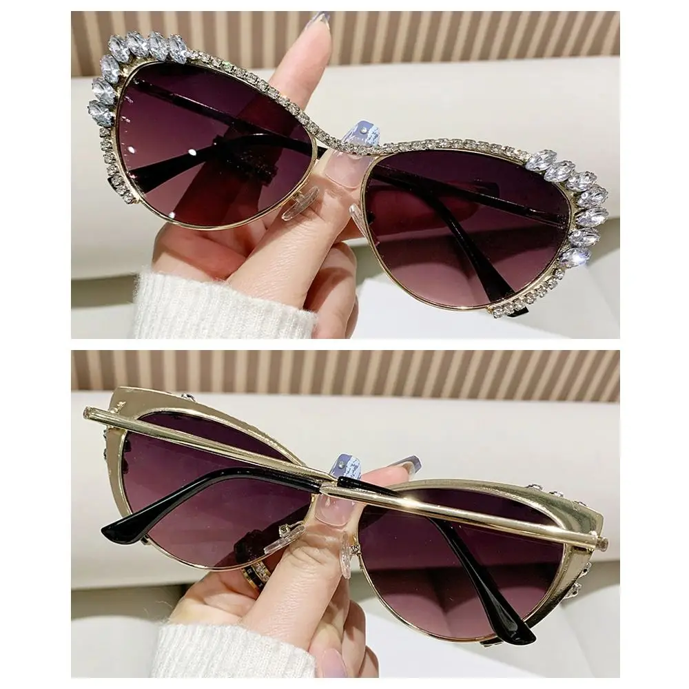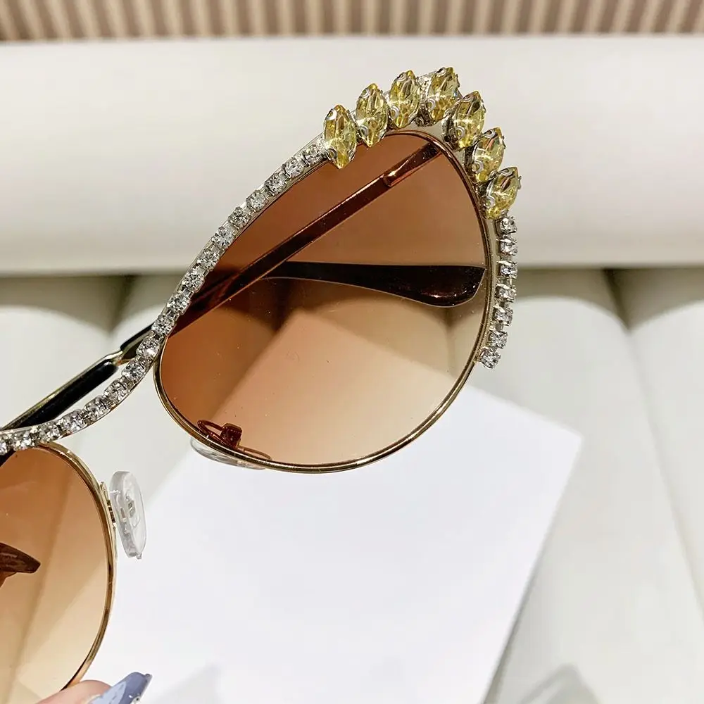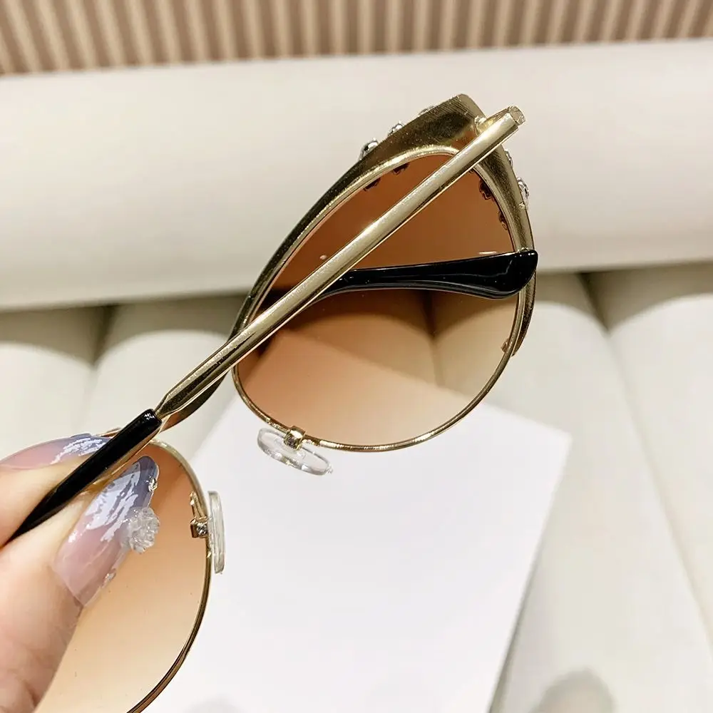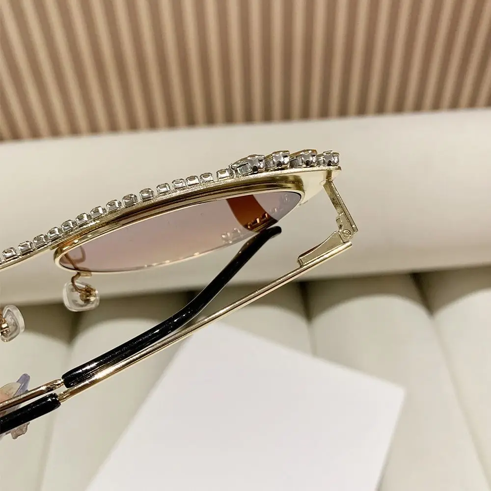 Nombre del producto: gafas de sol de metal adornadas con diamantes de imitación