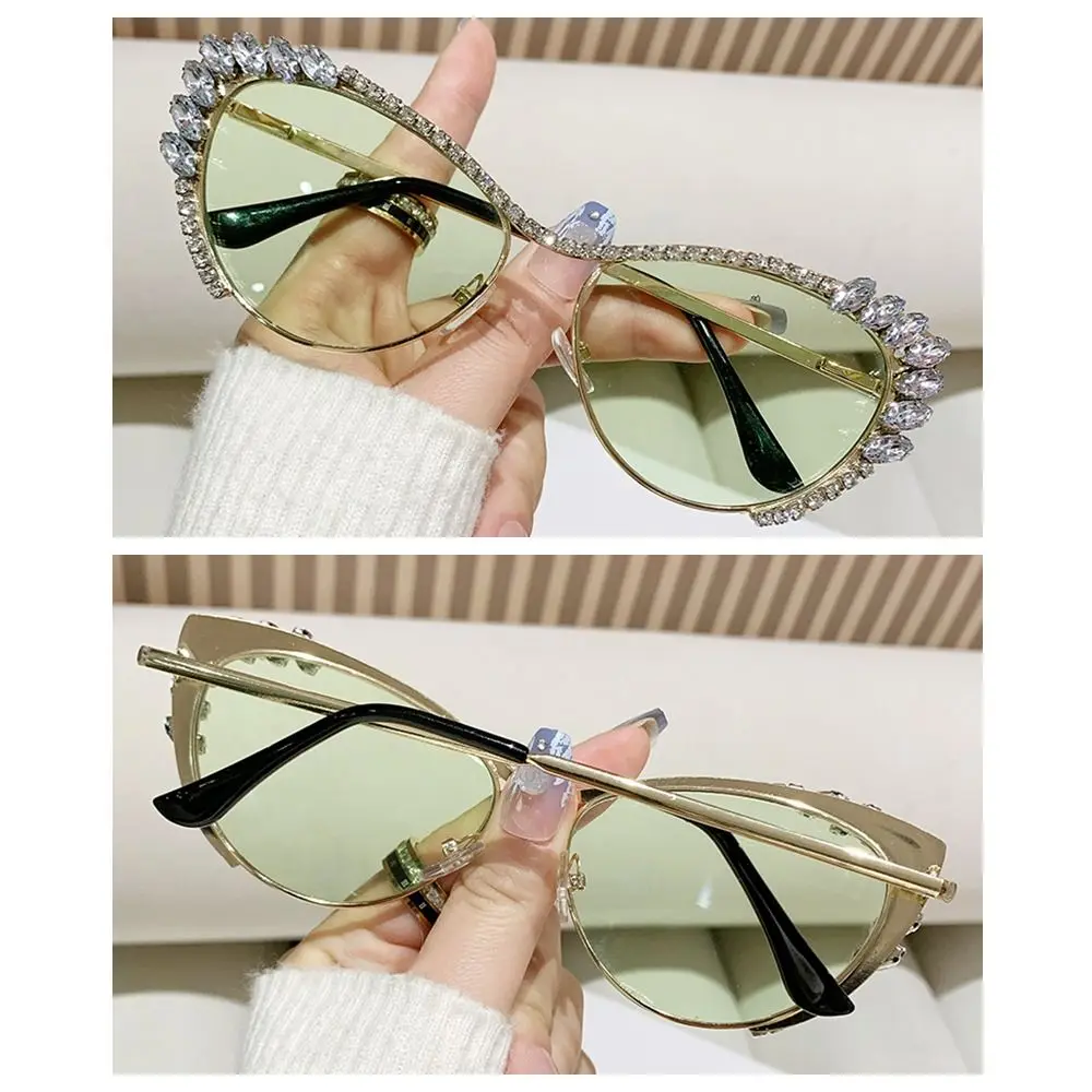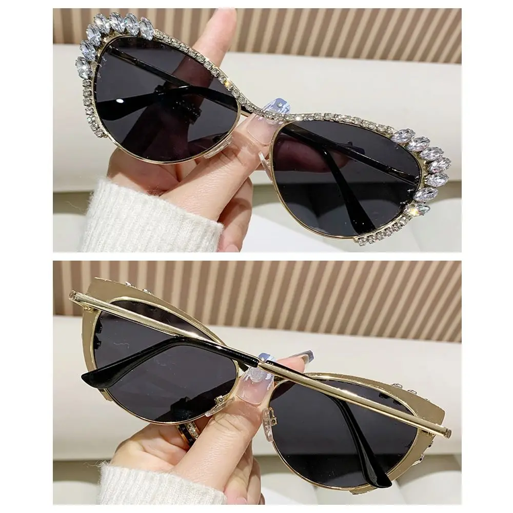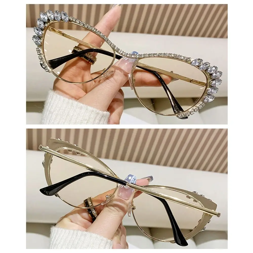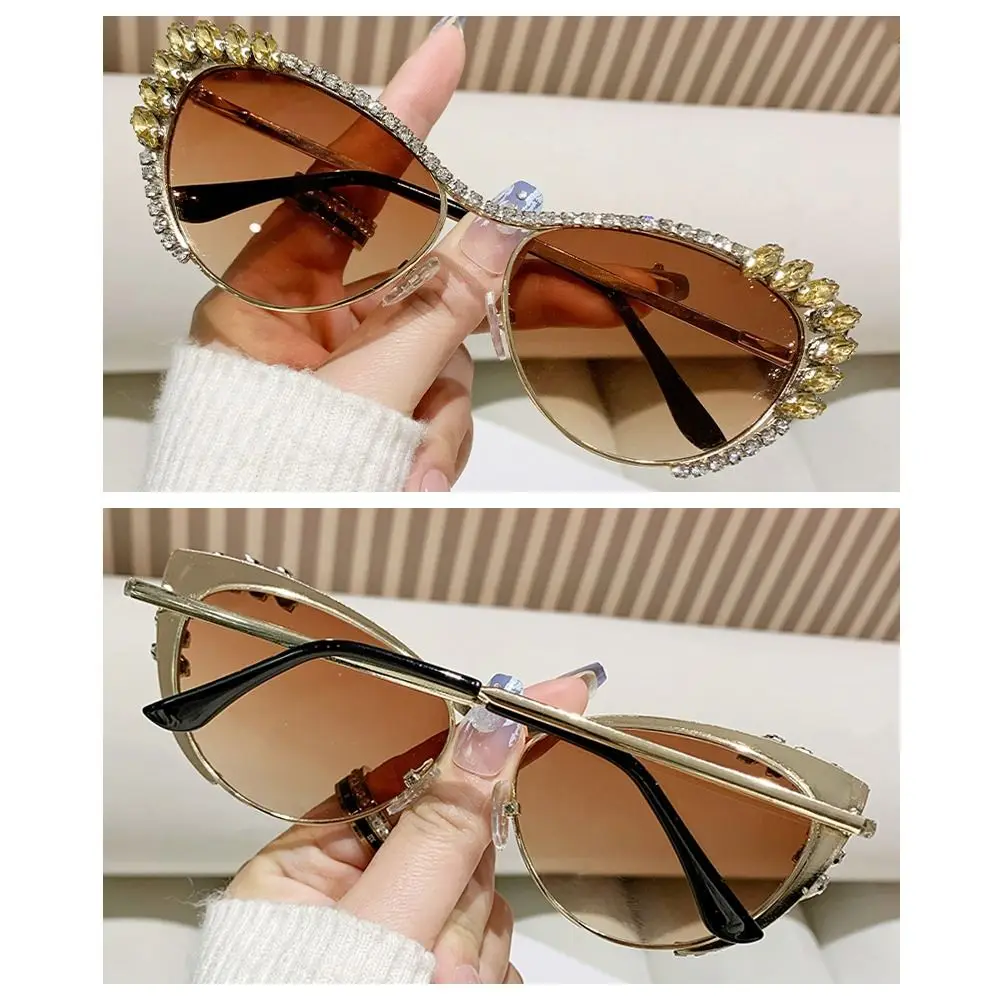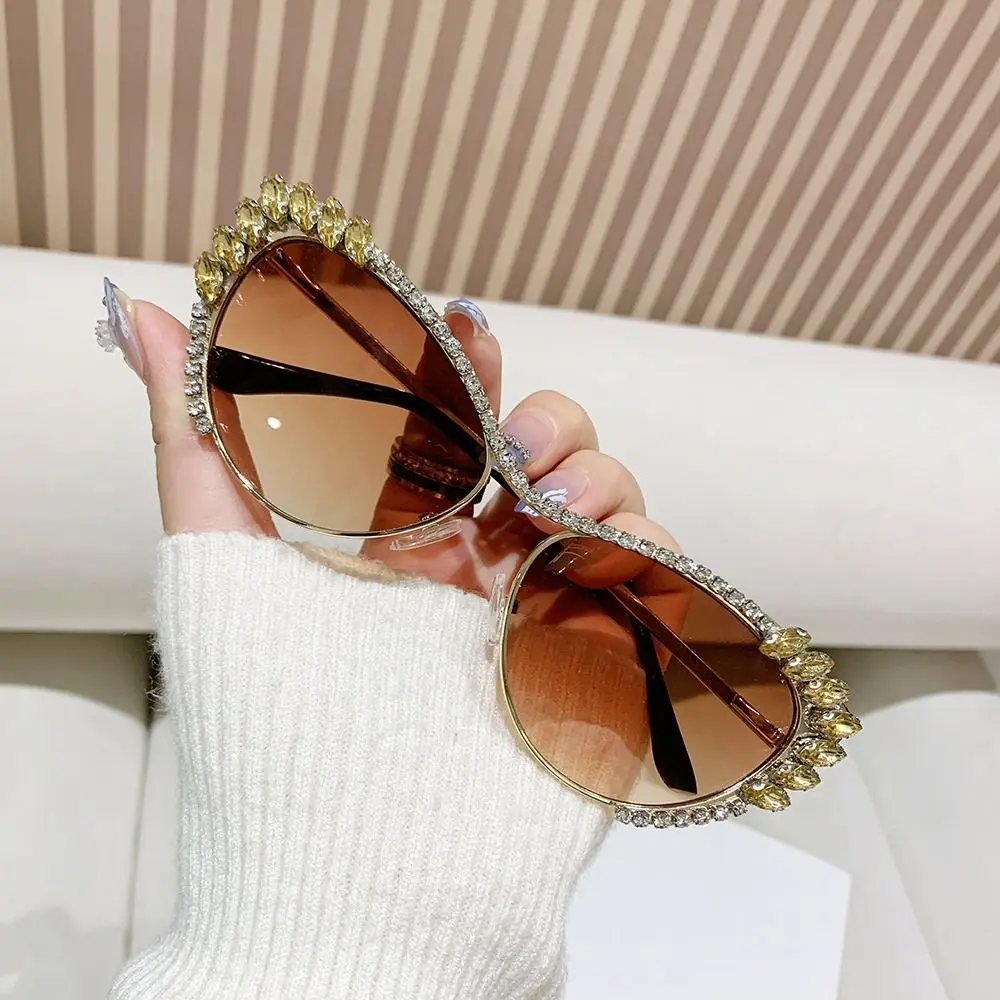 Nombre del producto: gafas de sol de metal adornadas con diamantes de imitación