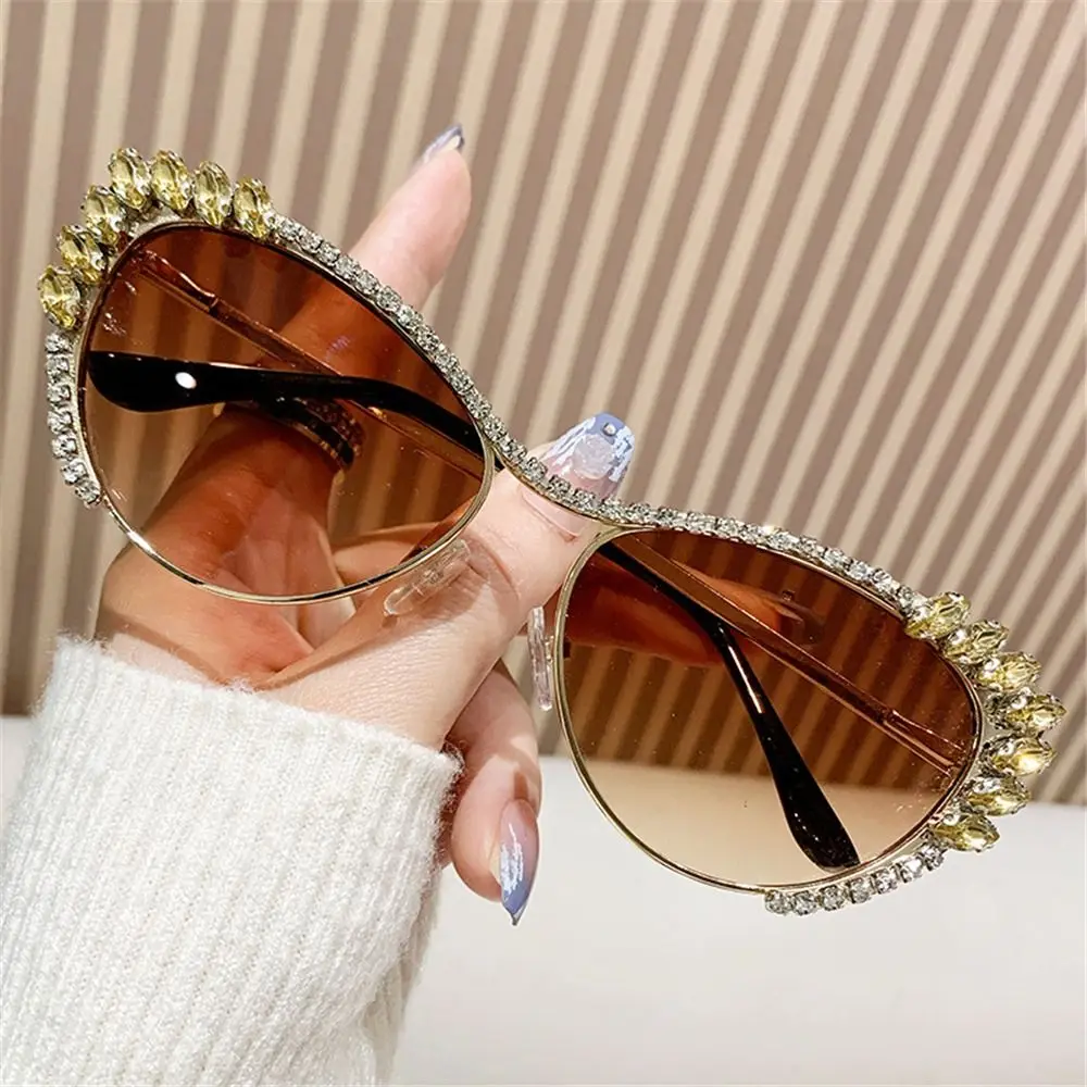 Nombre del producto: gafas de sol de metal adornadas con diamantes de imitación