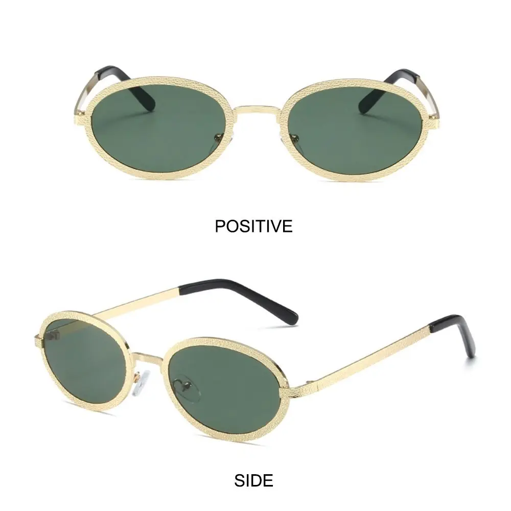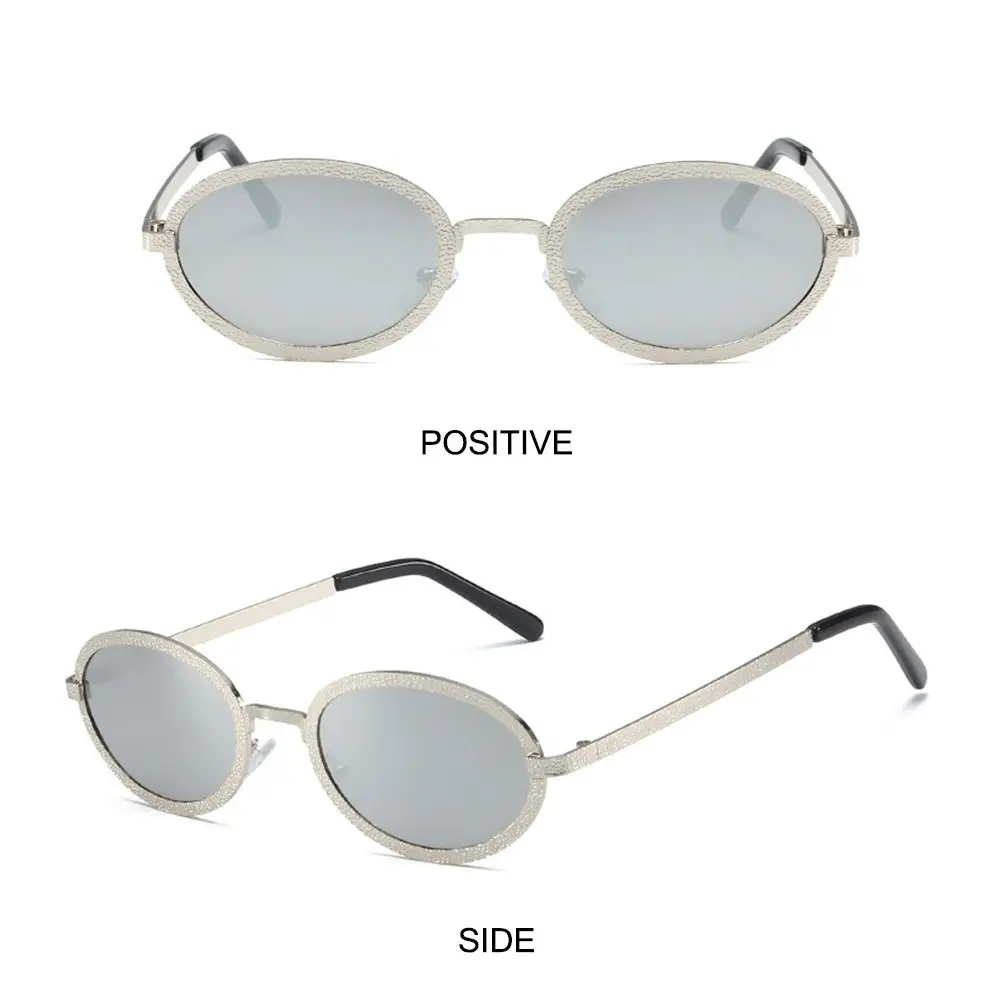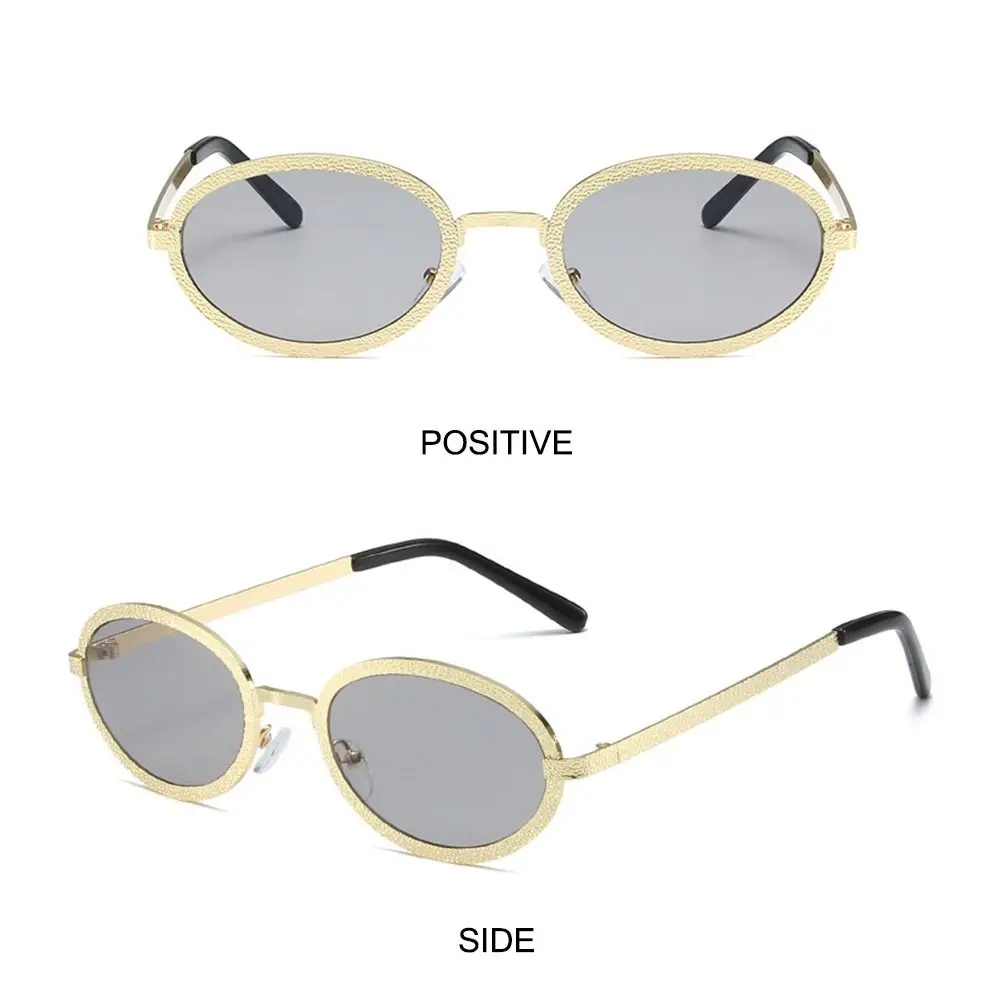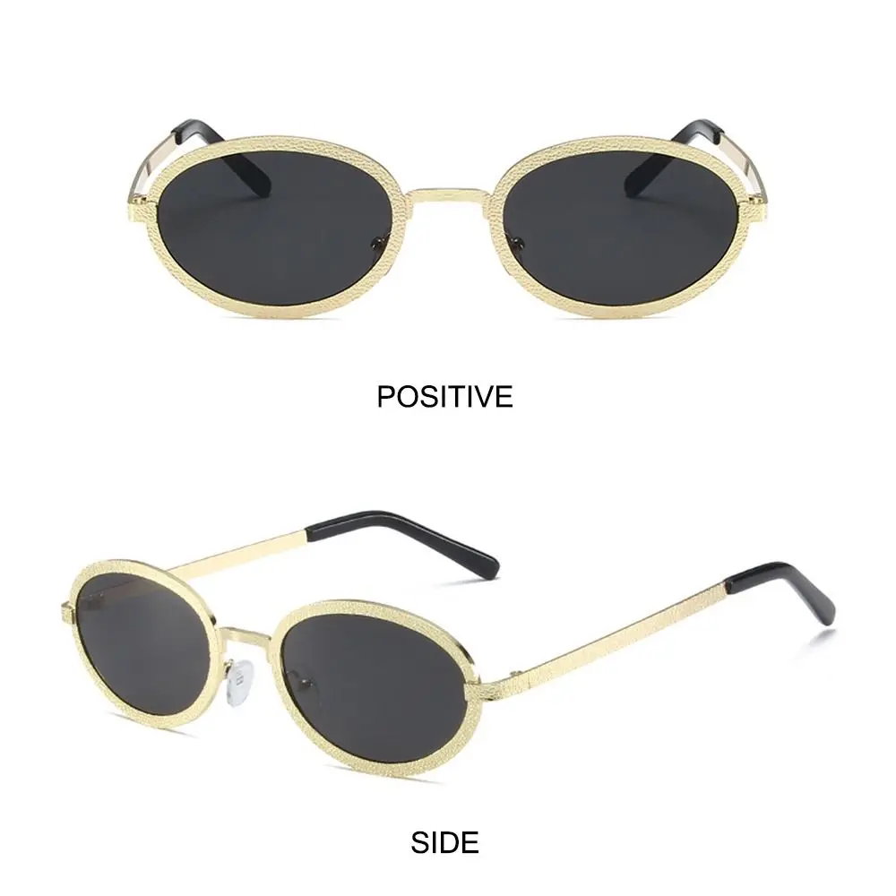Polarization Type: Non-Polarized - Korean Style Design: These sunglasses feature an embossed metal frame with a sleek, oval shape, blending retro and hip-hop punk aesthetics. The Korean style adds a unique and fashionable touch to any outfit.