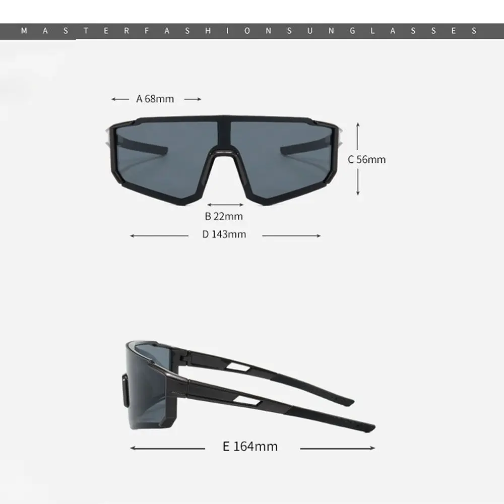 Nuevo y de alta calidad Nombre del producto: Gafas de ciclismo Estilo: Moda Color:6 colores disponibles Material:PC Tamaño del producto: A Ancho del marco: 68mm (2,68 pulgadas) B Ancho del Puente de la nariz: 22mm (0,87 pulgadas) del marco C Altura: 56mm (2,2 pulgadas) D Ancho total: 143mm (5,63 pulgadas) de las patillas E Longitud: 164mm (6,47 pulgadas) El paquete incluye: 1 x Gafas de sol Nota: 1. Hay una diferencia de 2 a 3% según la medición manual. Por favor, compruebe la talla cuidadosamente antes de comprar el artículo. 2. Tenga en cuenta que una ligera diferencia de color debe ser aceptable debido a la luz y la pantalla.