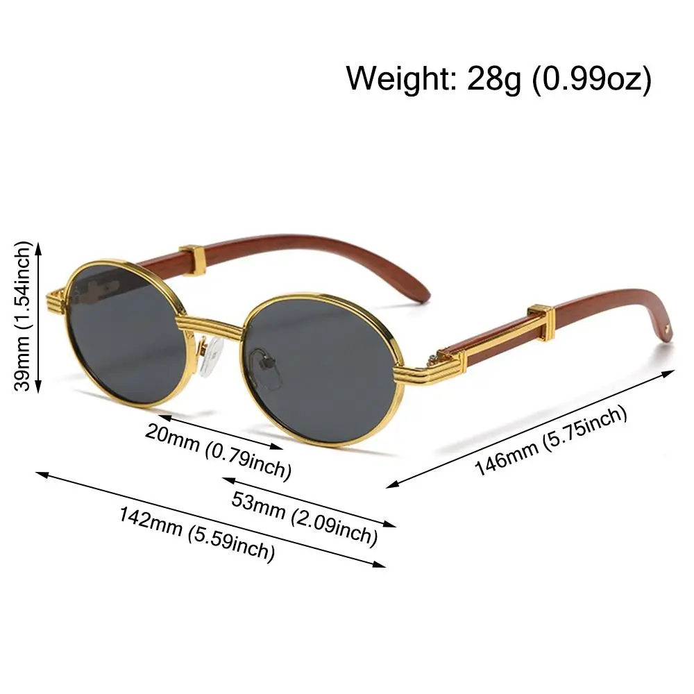 Product Name: Vintage Round Sunglasses Style: Y2K Style, Trendy Color: 6 Colors for your choice Lens Material: Polycarbonate Frame Material: PC Polarization Type: Non-Polarized Product Size: Total Width: 142mm (5.59inch) Frame Width: 53mm (2.09inch) Frame Height: 39mm (1.54inch) Nose Bridge Width: 20mm (0.79inch) Temples Length: 146mm (5.75inch) Weight: 28g (0.99oz) Package Included: 1 x Sunglasses Note: 1. There is a 2-3% difference according to manual measurement. Please check the size carefully before you buy the item. 2. Please note that a slight color difference should be acceptable due to the light and screen.