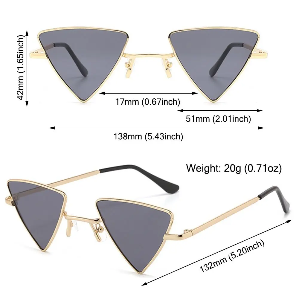 Product Name: Small Hippie Sunglasses Style: Retro Fashion Color: 9 Colors for your choice Lens Material: Polycarbonate Frame Material: PC, Metal Polarization Type: Non-Polarized Product Size: Total Width: 138mm (5.43inch) Frame Width: 51mm (2.01inch) Frame Height: 42mm (1.65inch) Nose Bridge Width: 17mm (0.67inch) Temples Length: 132mm (5.20inch) Weight: 20g (0.71oz) Package Included: 1 x Sunglasses Note: 1. There is a 2-3% difference according to manual measurement. Please check the size carefully before you buy the item. 2. Please note that a slight color difference should be acceptable due to the light and screen.