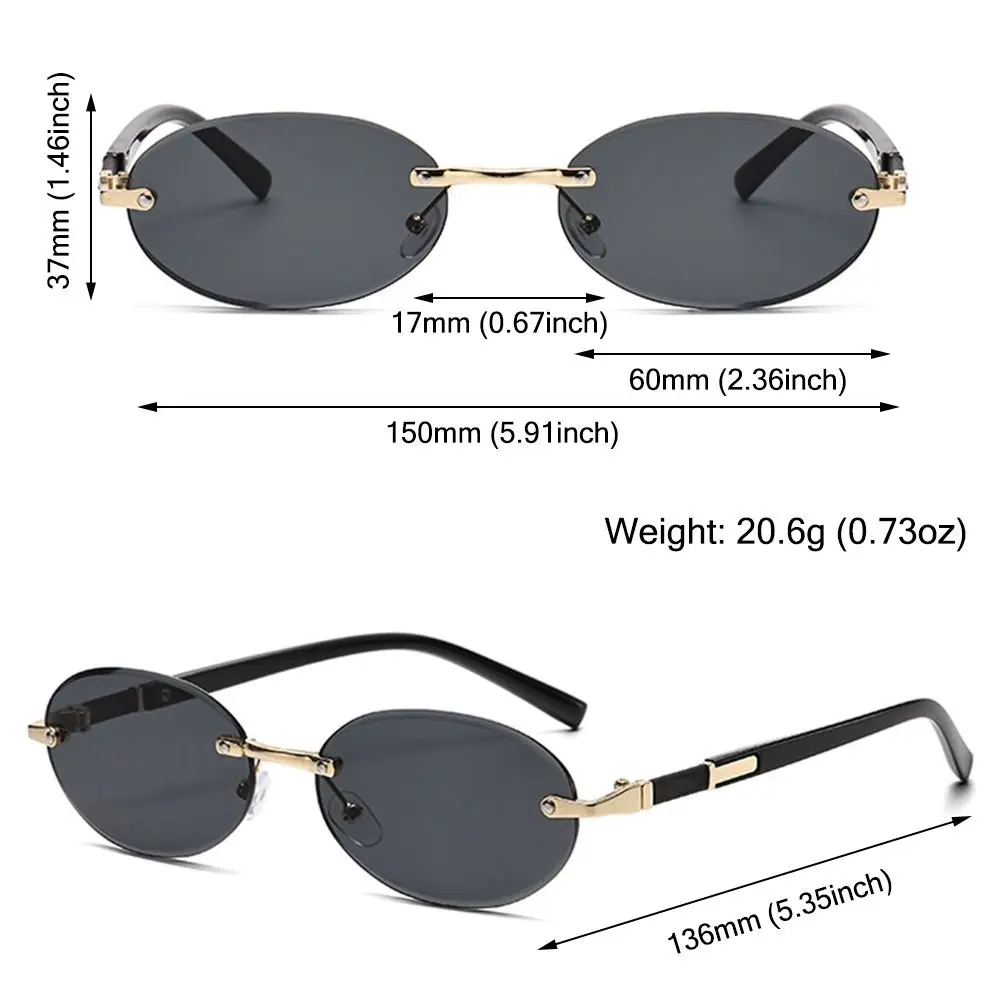 Nombre del producto: gafas de sol con montura ovalada de borde cortado a la moda. Estilo: Y2K, Hip-Hop. Color: 8 colores para su elección. Material de la lente: policarbonato. Material del marco: PC. Tipo de polarización de metal:. Tonos punk de hip-hop sin marco no polarizados: eleve su apariencia con nuestras gafas de sol de montura ovalada de borde cortado a la moda, Con un diseño sin marco que añade un audaz borde punk hip-hop. Perfecto para hacer una declaración en cualquier entorno. Gafas Y2K Street Style: abraza la estética Y2K con estas elegantes gafas de sol. El marco ovalado de borde cortado ofrece un toque único y moderno, ideal para mujeres vanguardistas a la moda que aman el estilo callejero. Protección UV: Equipadas con lentes UV400, estas gafas de sol proporcionan una protección esencial contra los dañinos rayos UVA y UVB. Disfrute de una visión clara y cómoda mientras mantiene sus ojos seguros bajo el sol. Perfecto para mujeres: diseñado específicamente para mujeres, estos tonos de moda son un accesorio versátil que complementa cualquier atuendo, ya sea que estés en la ciudad o posando para una fotografía de estilo callejero. Tamaño del producto: ancho total: 150mm (5,91 pulgadas) ancho de la lente: 60mm (2,36 pulgadas) altura de la lente: 37mm (1,46 pulgadas) de la nariz ancho del puente: 17mm (0,67 pulgadas) longitud de las patillas: 136mm (5,35 pulgadas) Peso: 20,6G (0,73 oz) Paquete incluido: 1 x gafas de sol Nota: 1. Hay una diferencia de 2 a 3% según la medición manual. Compruebe cuidadosamente la talla antes de comprar el artículo. 2. Tenga en cuenta que una ligera diferencia de color debe ser aceptable debido a la luz y la pantalla.