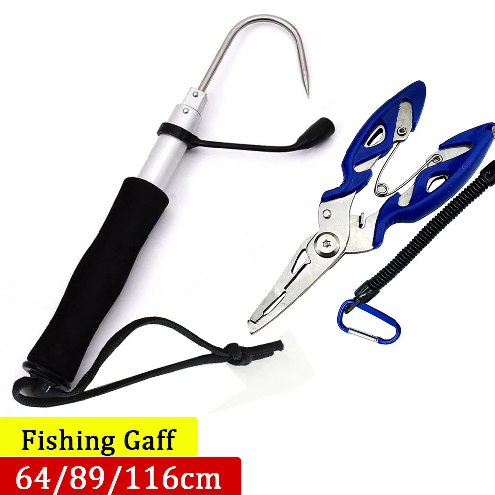 Gaff de calamar, Gaff de pesca telescópico, gancho de acero inoxidable, lanza, barco de mar, herramienta de pesca en hielo, alicates para peces con caña telescópica al aire libre
