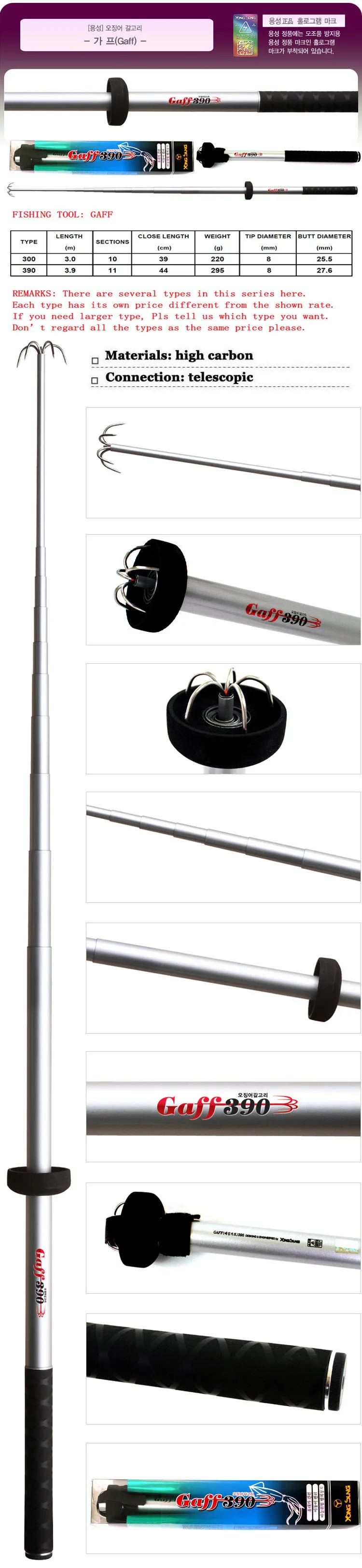 Gaff de pesca de calamar telescópico, aparejos de terminales de pulpo de carbono, cañas de pescado, accesorios de herramientas, anzuelos de aterrizaje de sepia, 3m, 3,9 m