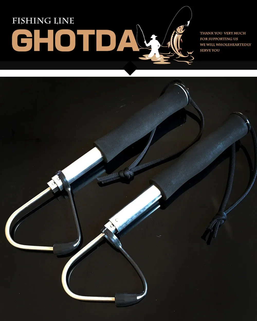 Información básica Material: acero inoxidable + EVA Color: plata + negro Modelo: 64cm/89cm/116cm Peso neto: aproximadamente 125g/170g/200g Ámbito de aplicación: anzuelo de pez grande