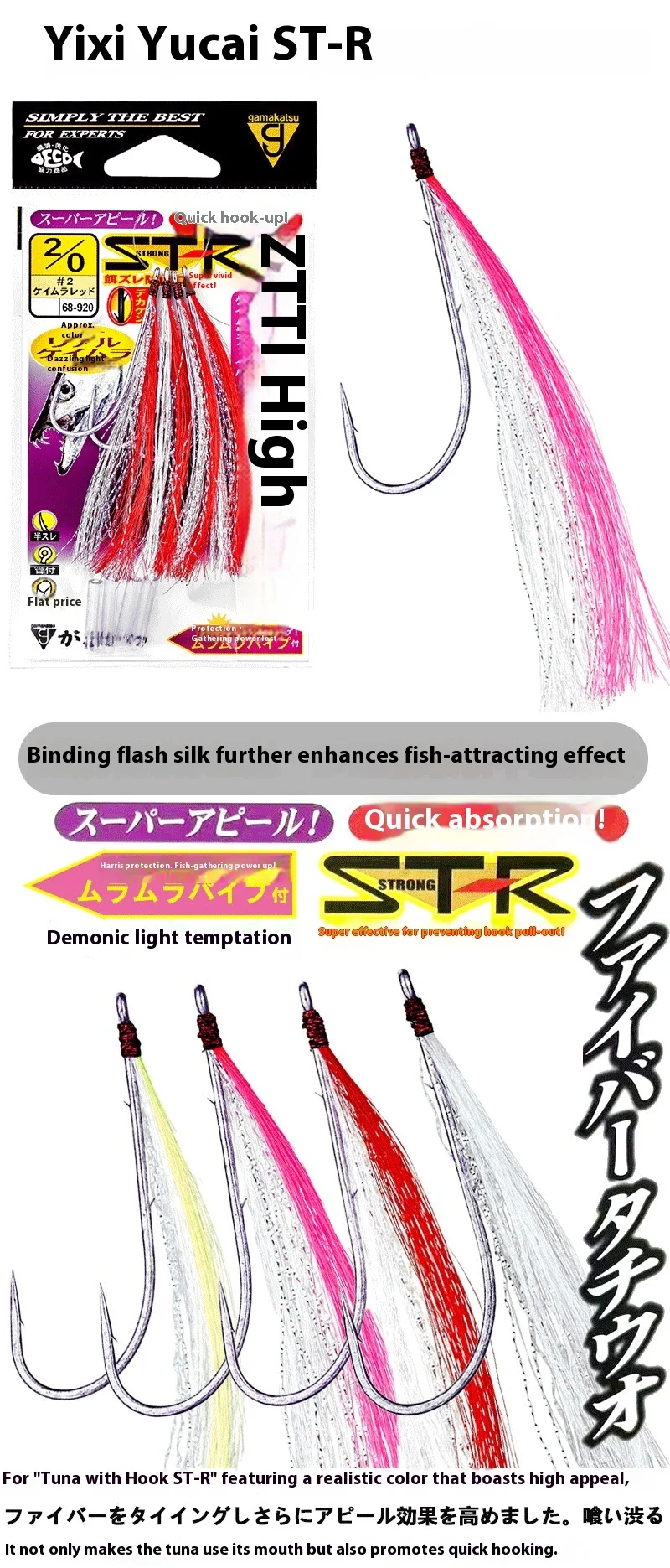 Gamakatsu colorido Tai Dao anzuelo tubo mango largo espalda púas pesca en el mar luz UV barco pesca cola de pelo