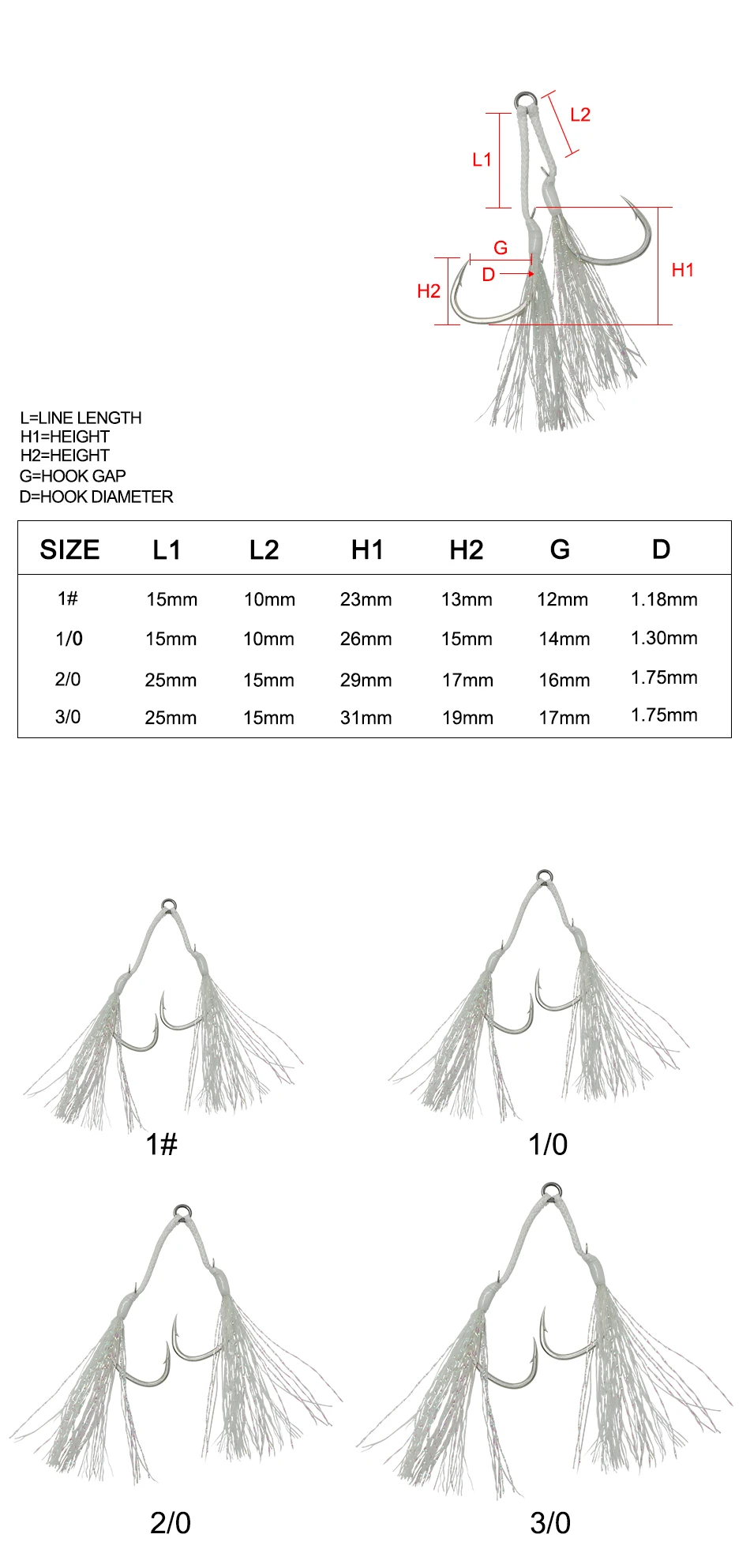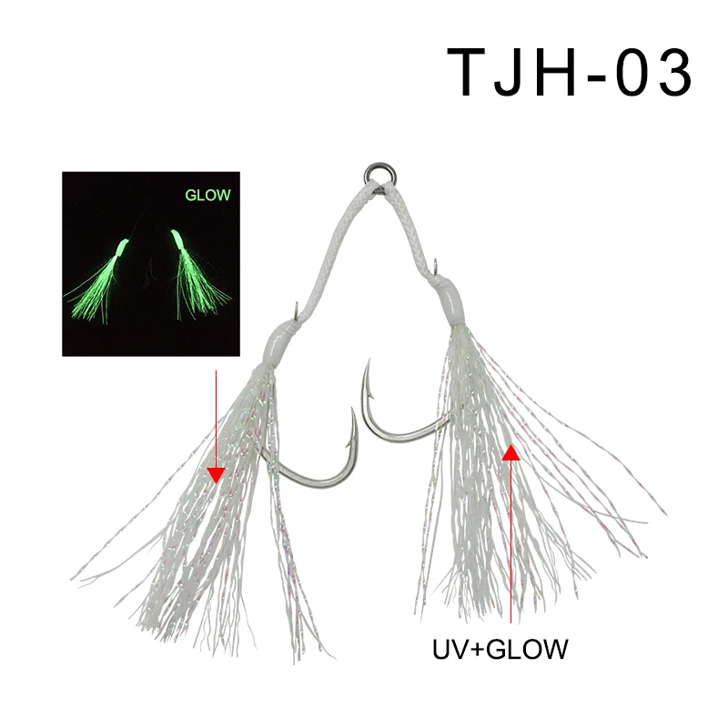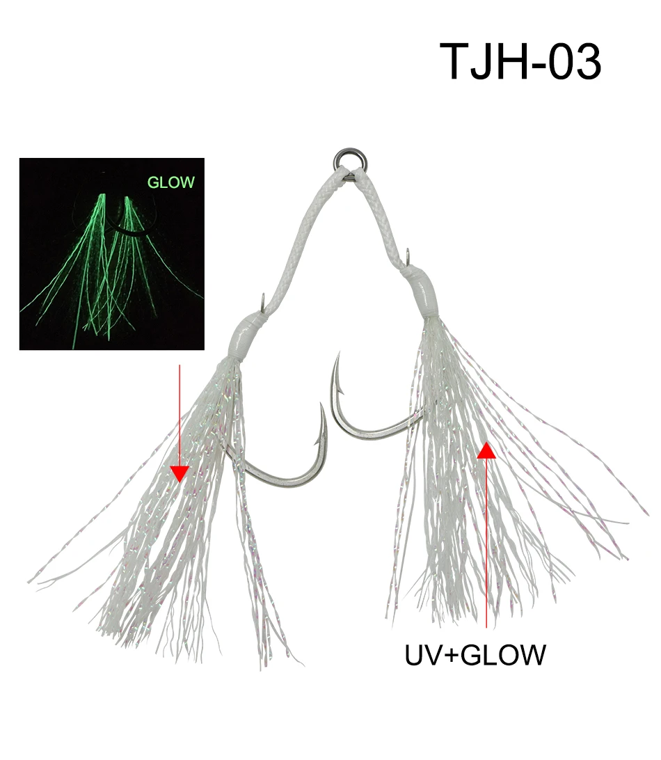 Juego de anzuelos de doble asistencia luminosos/brillantes TJH de pesca JK