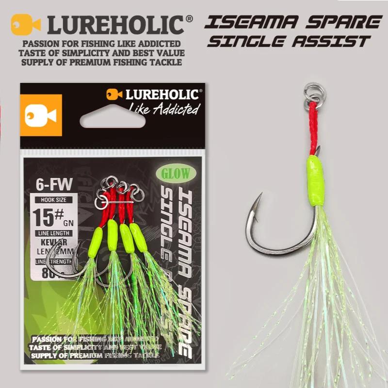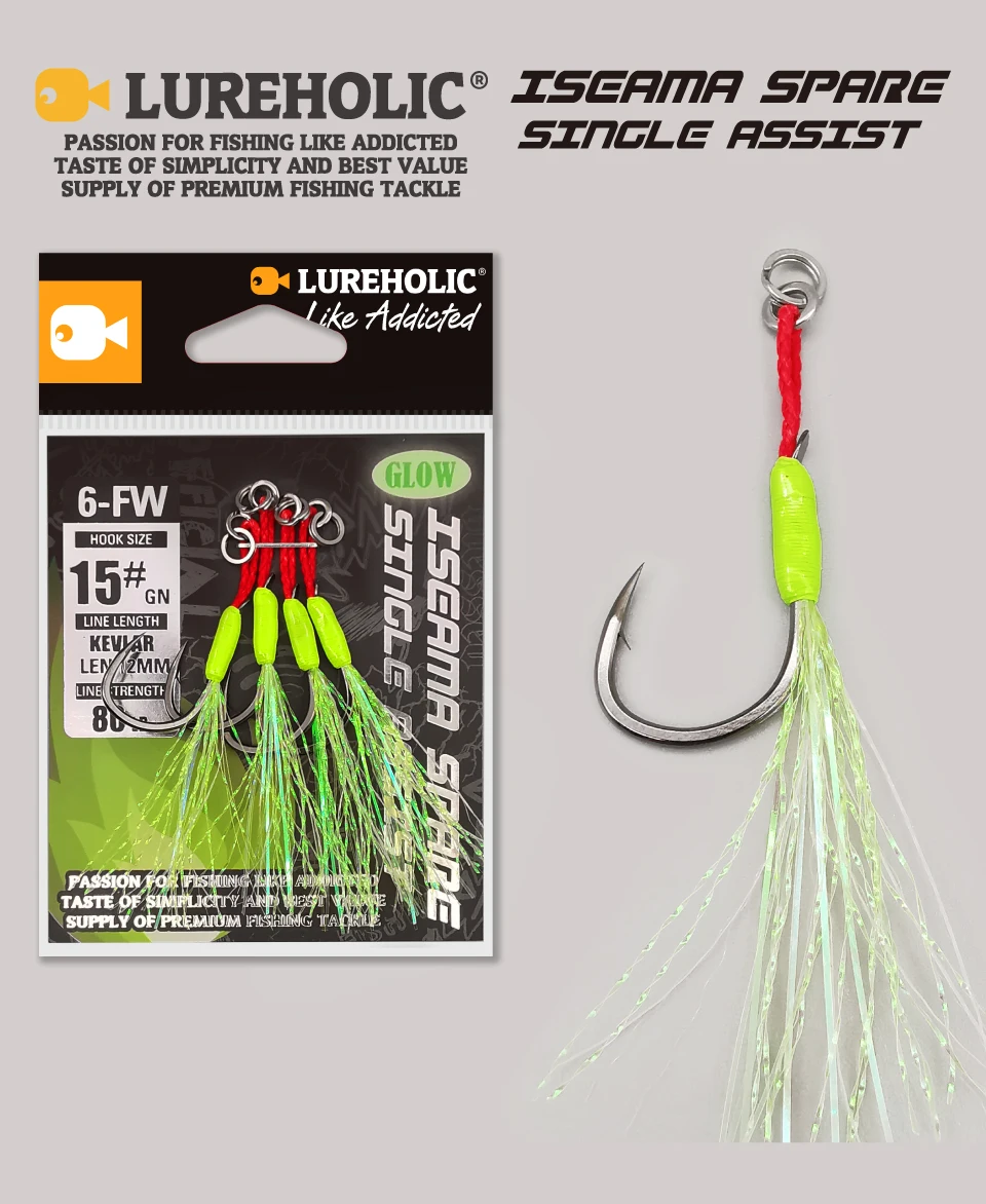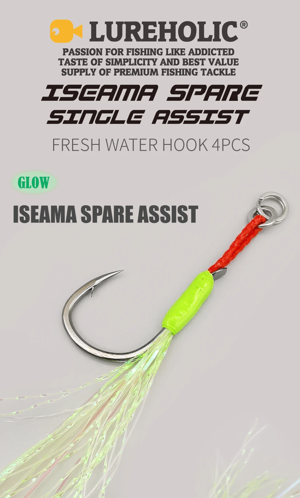 Gancho de agua dulce de asistente único de repuesto ISEAMA LUREHOLIC de 6-FW con cola de TINSEL brillante