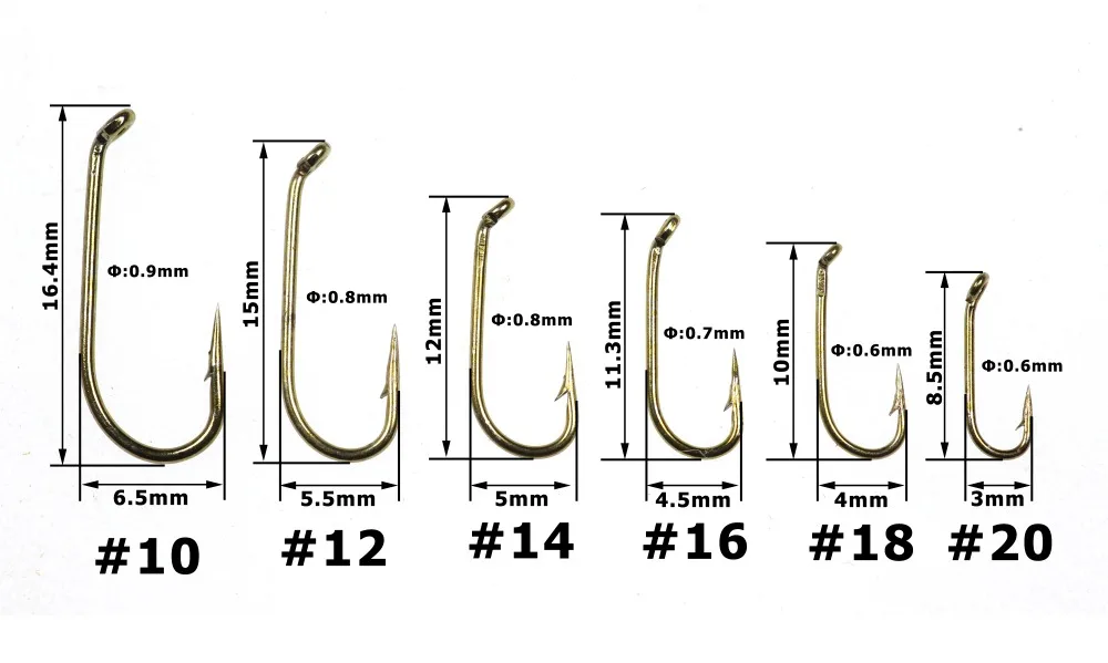 Gancho para atar moscas de 500 piezas, gancho para moscas húmedas, gancho para moscas Nymph, ganchos bronceados de tamaño 10 12 14 16 18 20 al por mayor