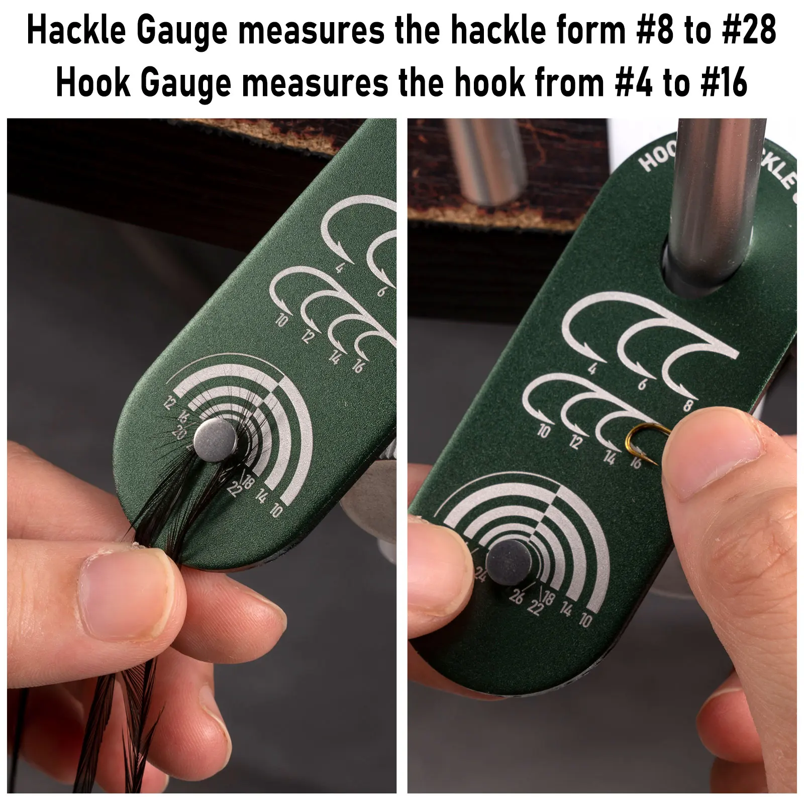 Alta calidad: el calibre Hackle y gancho está hecho de material de aluminio anodizado y mecanizado, con excelente durabilidad y resistencia al óxido, lo que garantiza un uso a largo plazo.
