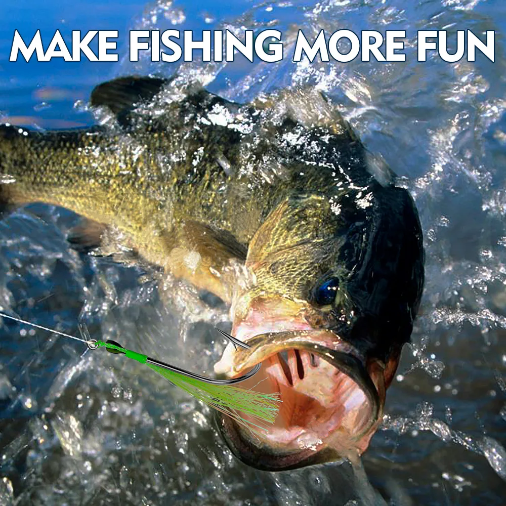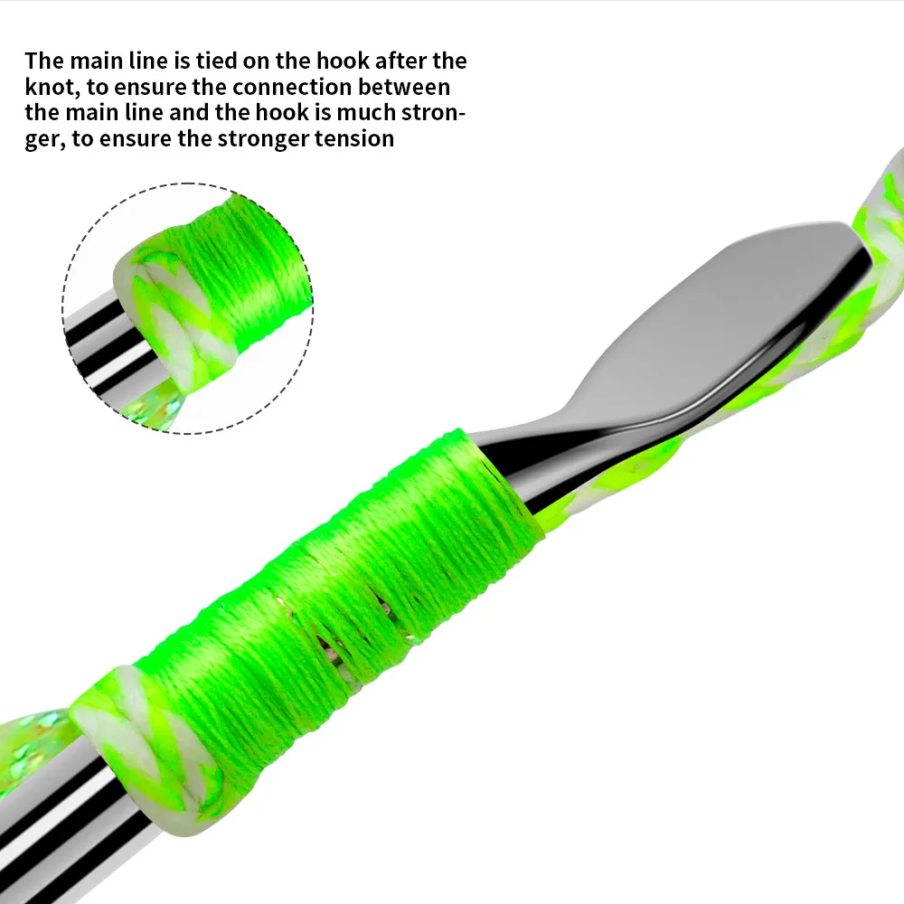 TENIDO A MANO PARA MÁXIMA CONFIABILIDAD: Cada anzuelo está meticulosamente armado a mano con una línea trenzada de primera calidad para una resistencia y durabilidad superiores del nudo, lo que garantiza que su configuración permanezca intacta contra los peces que combaten duramente.