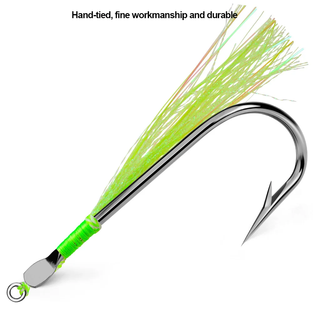 GANCHO DE JIGGING DE BARRO Y BARRO VERSÁTIL: Diseñado para jigging de tono lento, jigging vertical y pesca en barco. Listo para acoplarse a cualquier jig head o señuelo para una pesca eficaz en alta mar, arrecife o en aguas profundas.