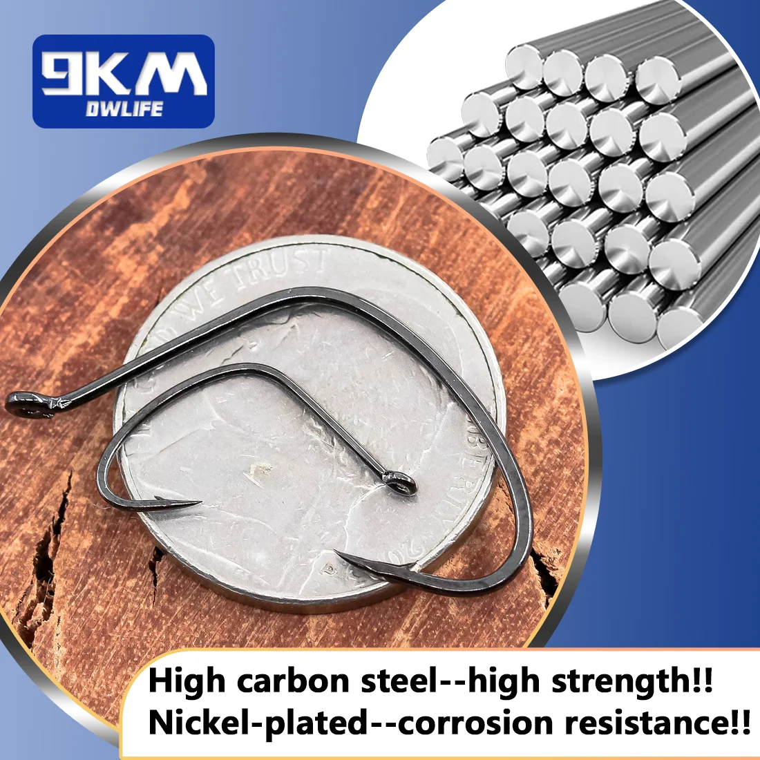La construcción de acero con alto contenido de carbono garantiza que estos ganchos resistan las condiciones más duras, incluidos los fondos rocosos y la vegetación pesada. Esta durabilidad no solo extiende la vida útil de los anzuelos, sino que también mejora su capacidad para manejar peces más grandes y capturas más desafiantes. Los pescadores pueden confiar en estos anzuelos para mantener su ventaja, temporada tras temporada, sin compensación.
