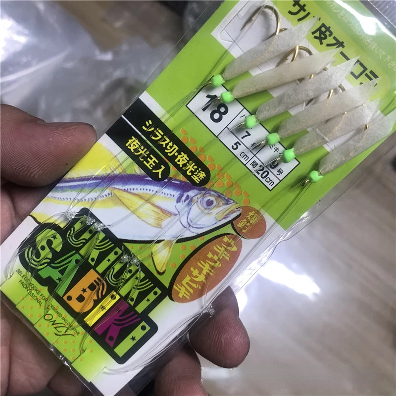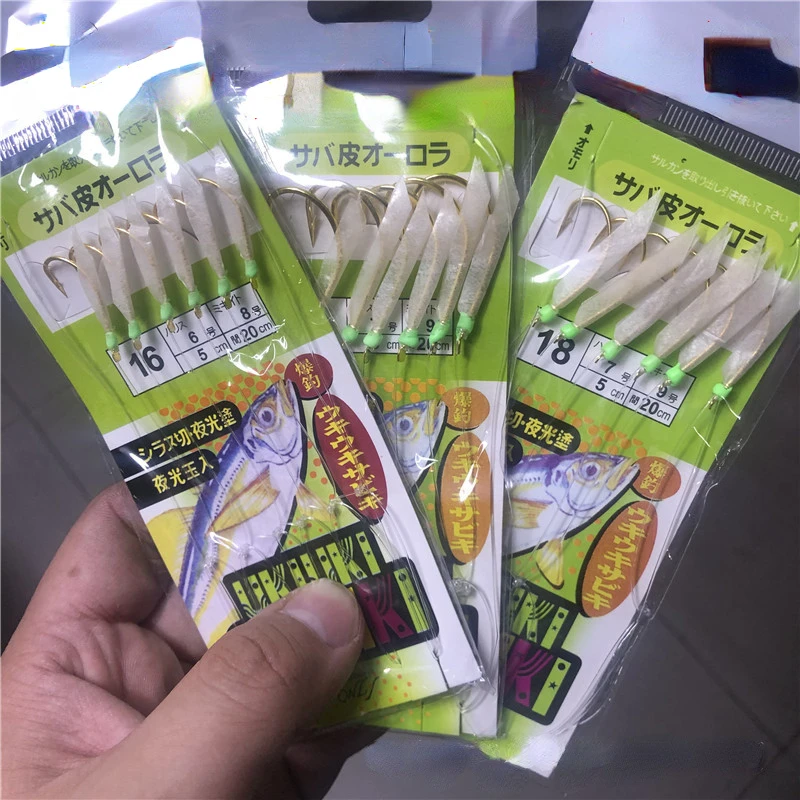 Gancho Biónico de piel de pescado blanco grande, 5 bolsas, gancho de piel de Camarón, boca deformada, caballa a rayas blancas, anzuelo de pescado de caballa española