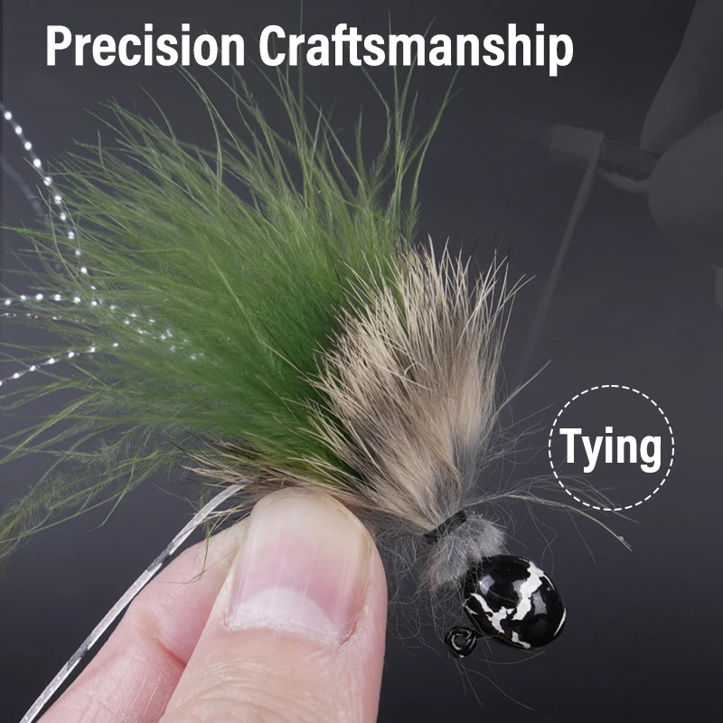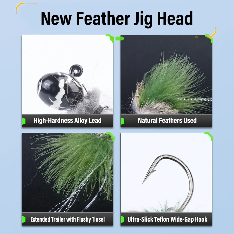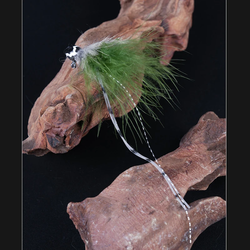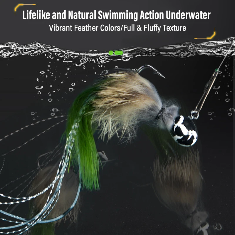 Máxima atracción: las plumas vibrantes y ultra esponjosas combinadas con hebras de seda helada de alta visibilidad crean una estimulación visual y un destello intensos, dibujando golpes de manera efectiva incluso en aguas manchadas o condiciones de poca luz.