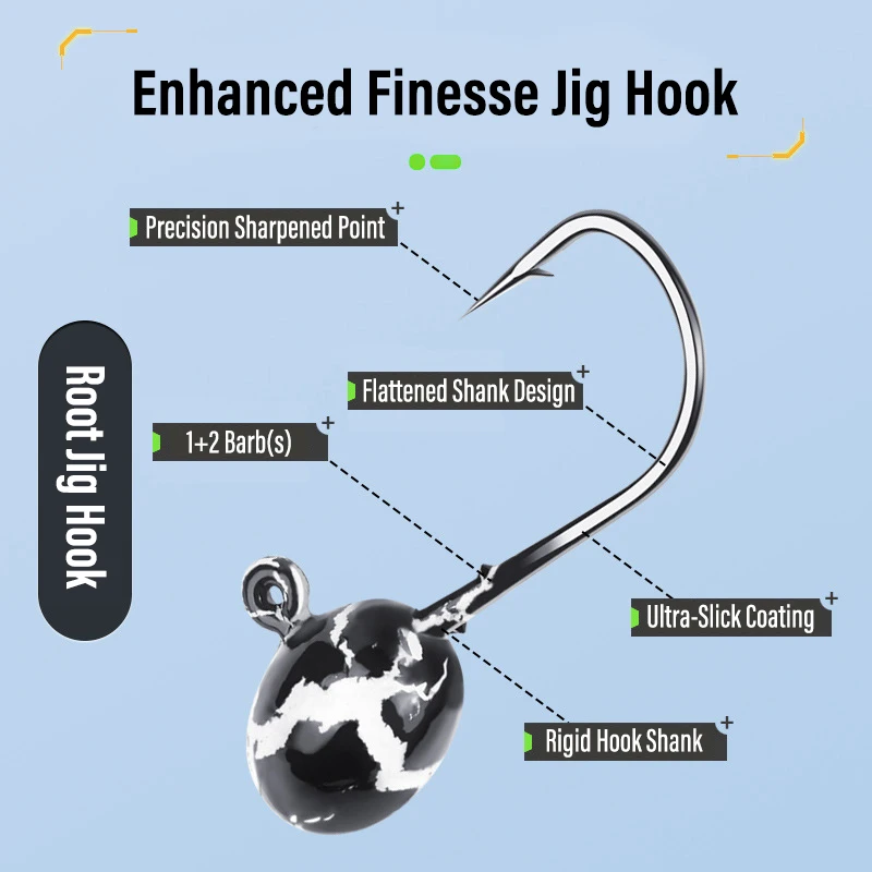 Gancho de espacio amplio de primera calidad Penetración inigualable: Equipado con un gancho de espacio ancho recubierto de teflón súper suave que presenta un vástago reforzado, un punto de precisión afilado como una navaja, un diseño de doble púas (1+2) y un revestimiento antideslizante para anzuelos devastadores y sujeción segura en depredadores de boca dura.