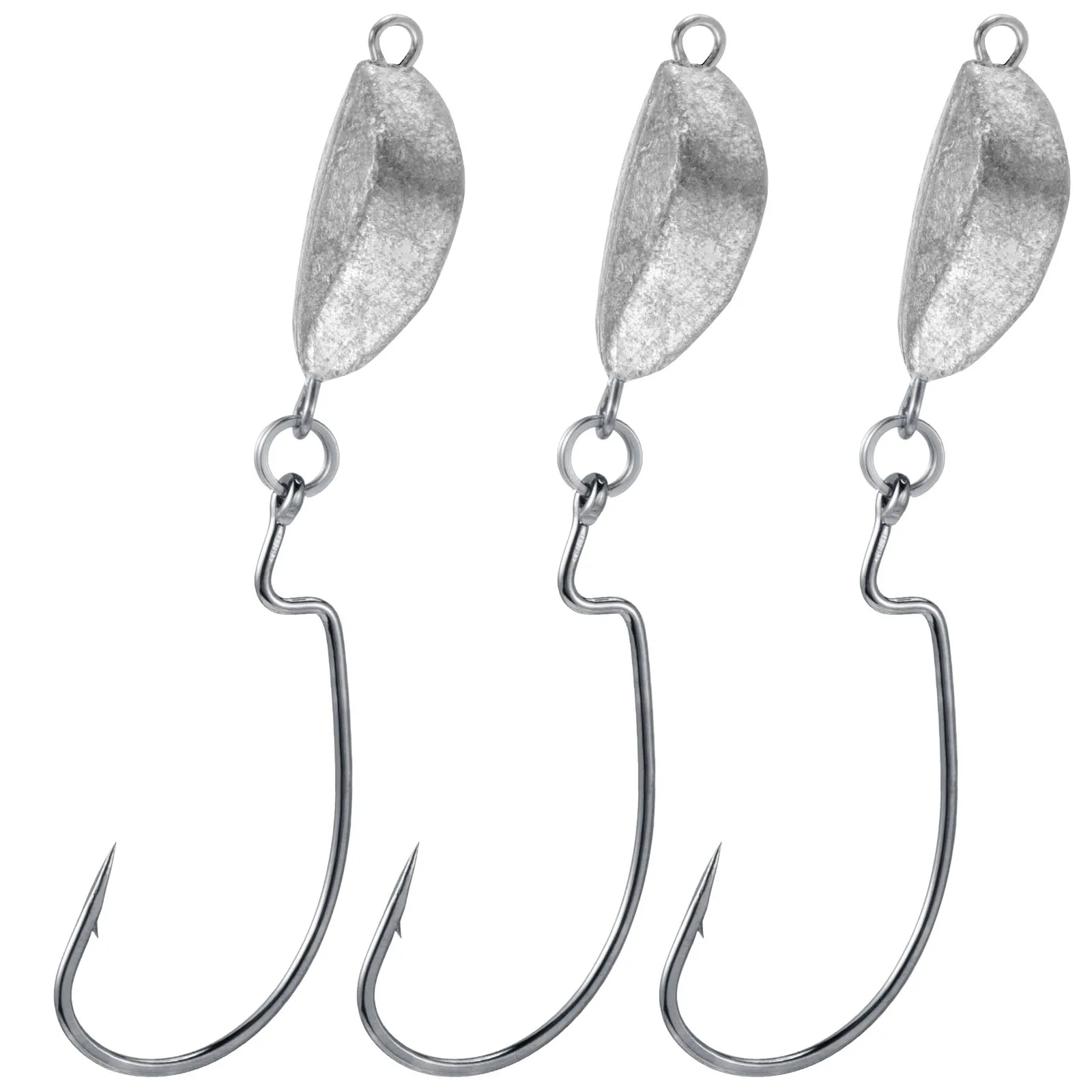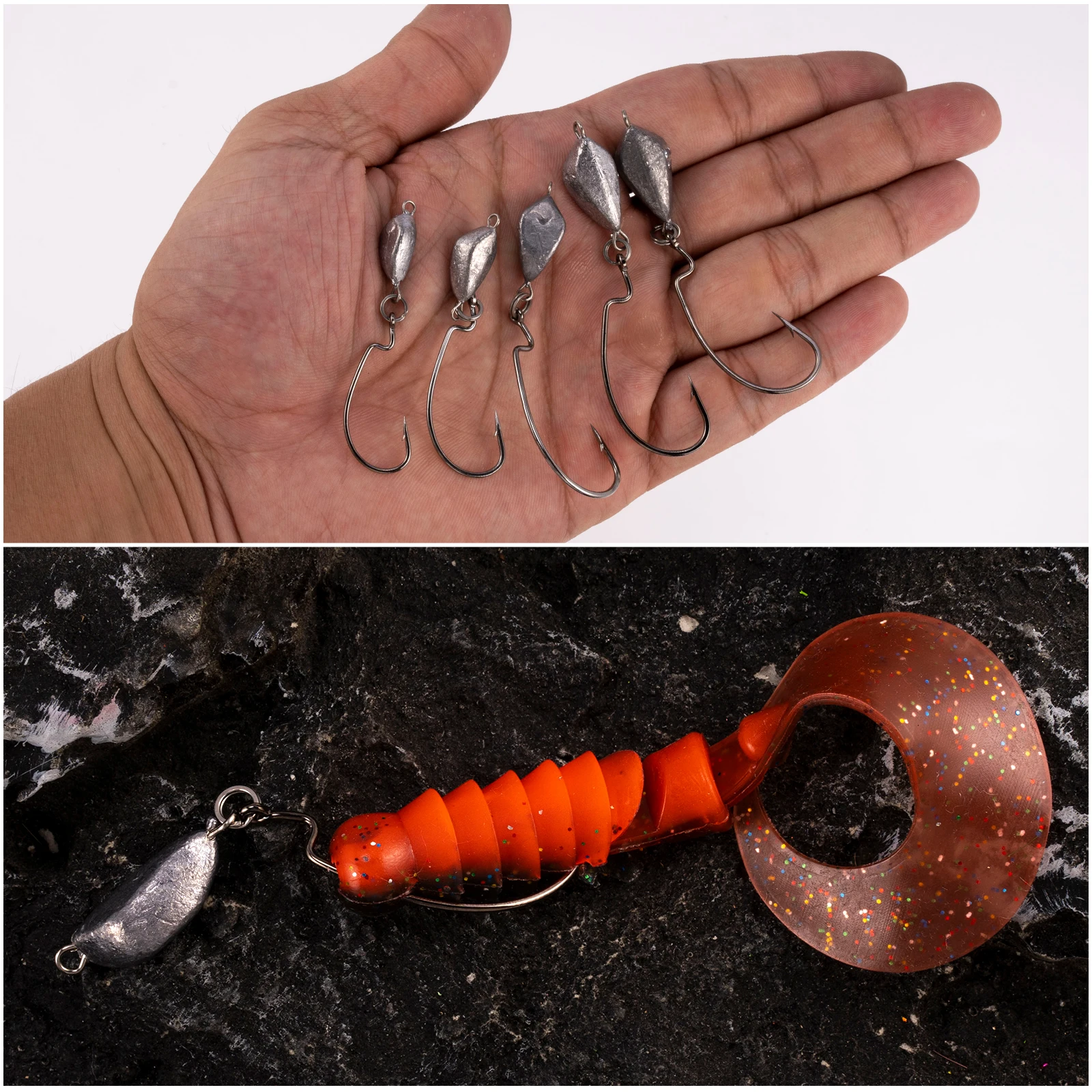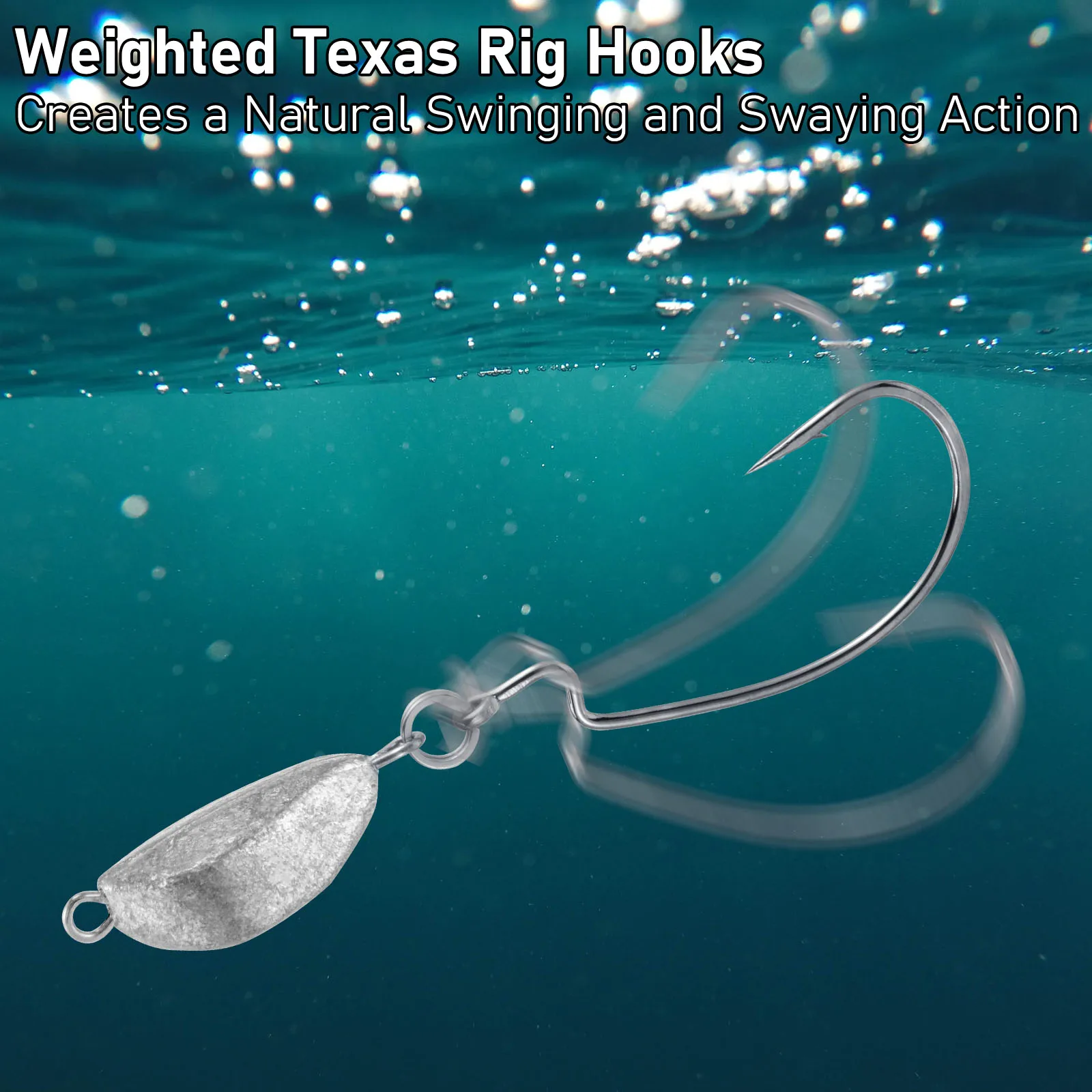4.Acción de natación realista: los anzuelos ponderados crean una presentación oscilante y oscilante mientras su señuelo nada o gatina a través de su recuperación, lo que aumenta sus posibilidades de lograr una captura exitosa, lo que lo convierte en un objetivo irresistible para peces de todo tipo y tamaño.