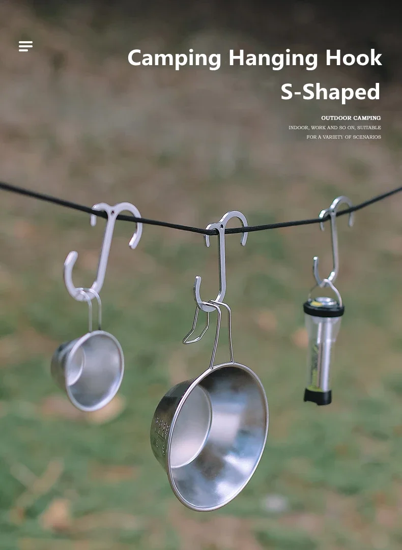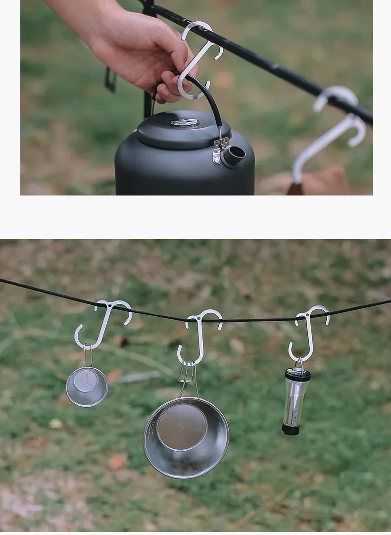 Gancho colgante de cuero en forma de S para exteriores, 1/2/3/4 piezas, utensilios de cocina de viaje, gancho de acabado, soporte para olla, sartén, lámpara, estante de almacenamiento