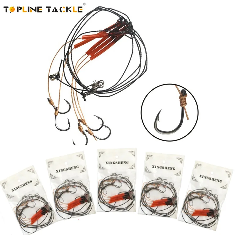 Anzuelo de cuerda de acero de alto carbono con 5 anzuelos pequeños, aparejos de anzuelos giratorios, aparejos de acero inoxidable, cadena de anzuelos, Ksbing inferior