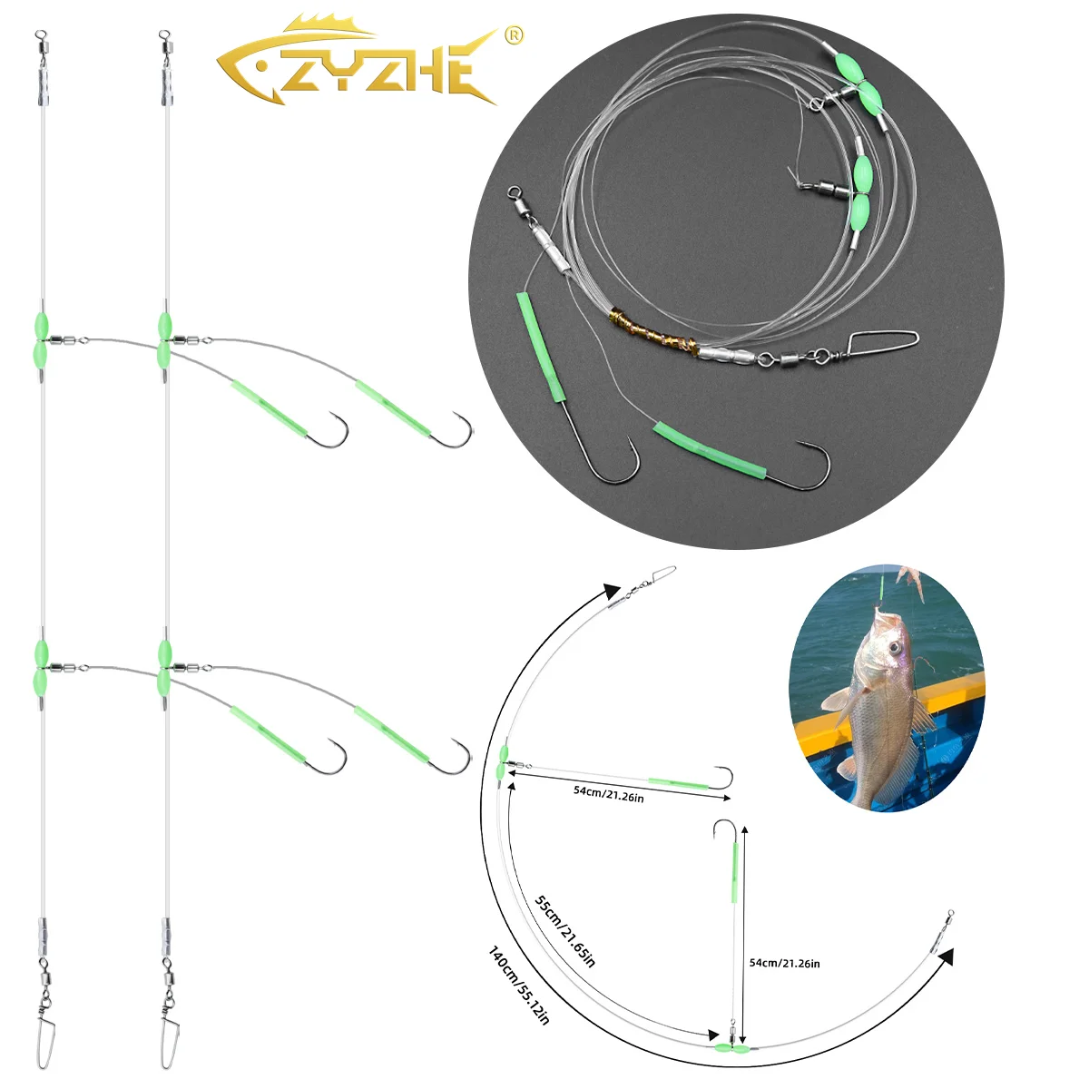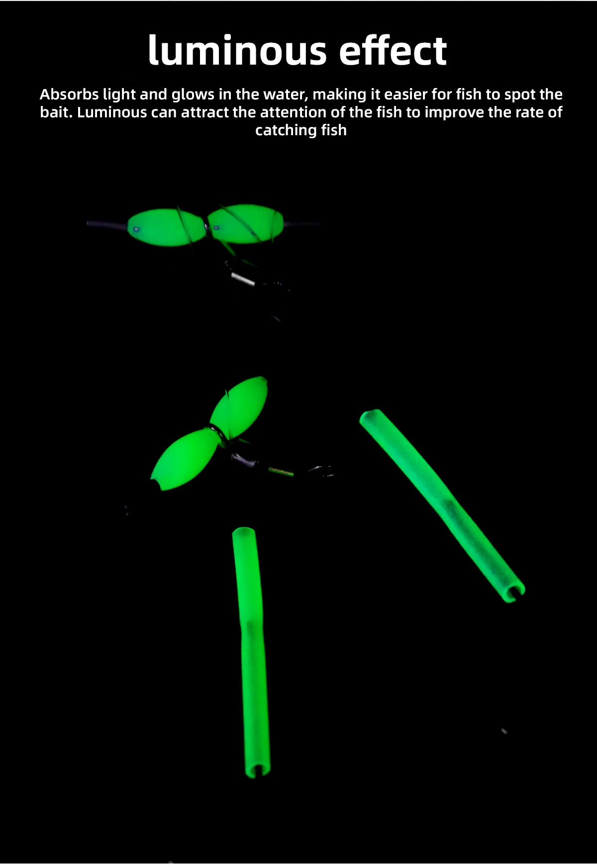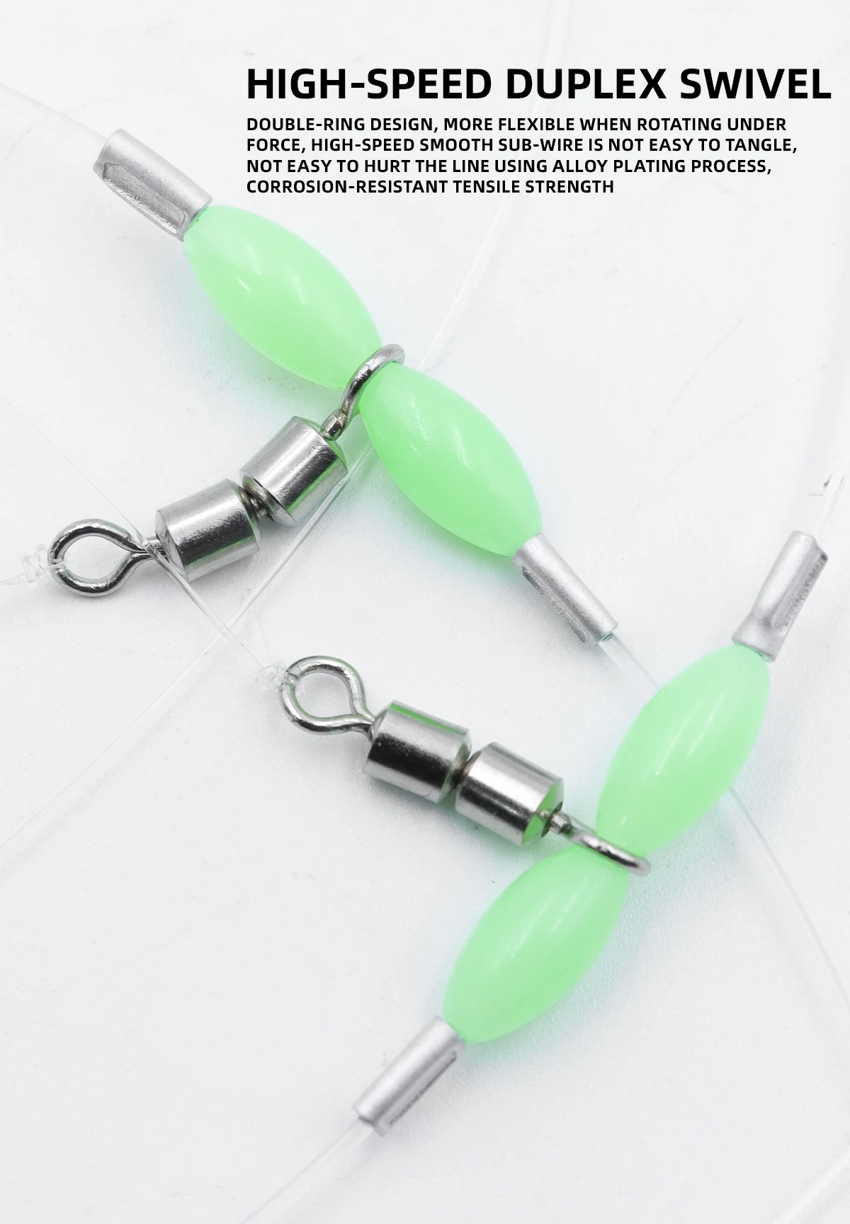 Gancho de cuerda de pesca ZYZ, 2-anzuelos Albardeen, anzuelos de cuerda con tubo luminoso, anzuelos de pesca de agua salada giratorios de alta velocidad