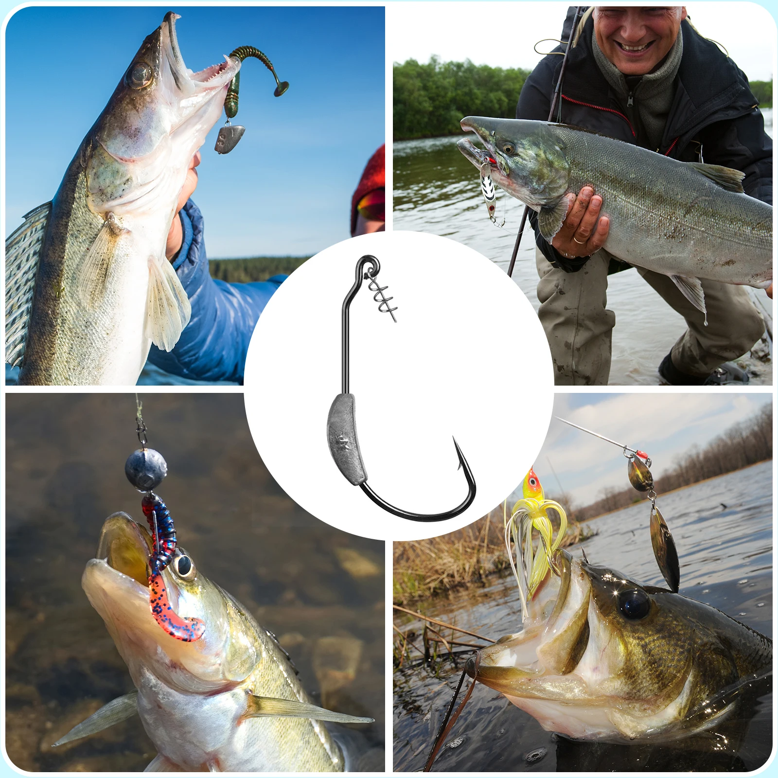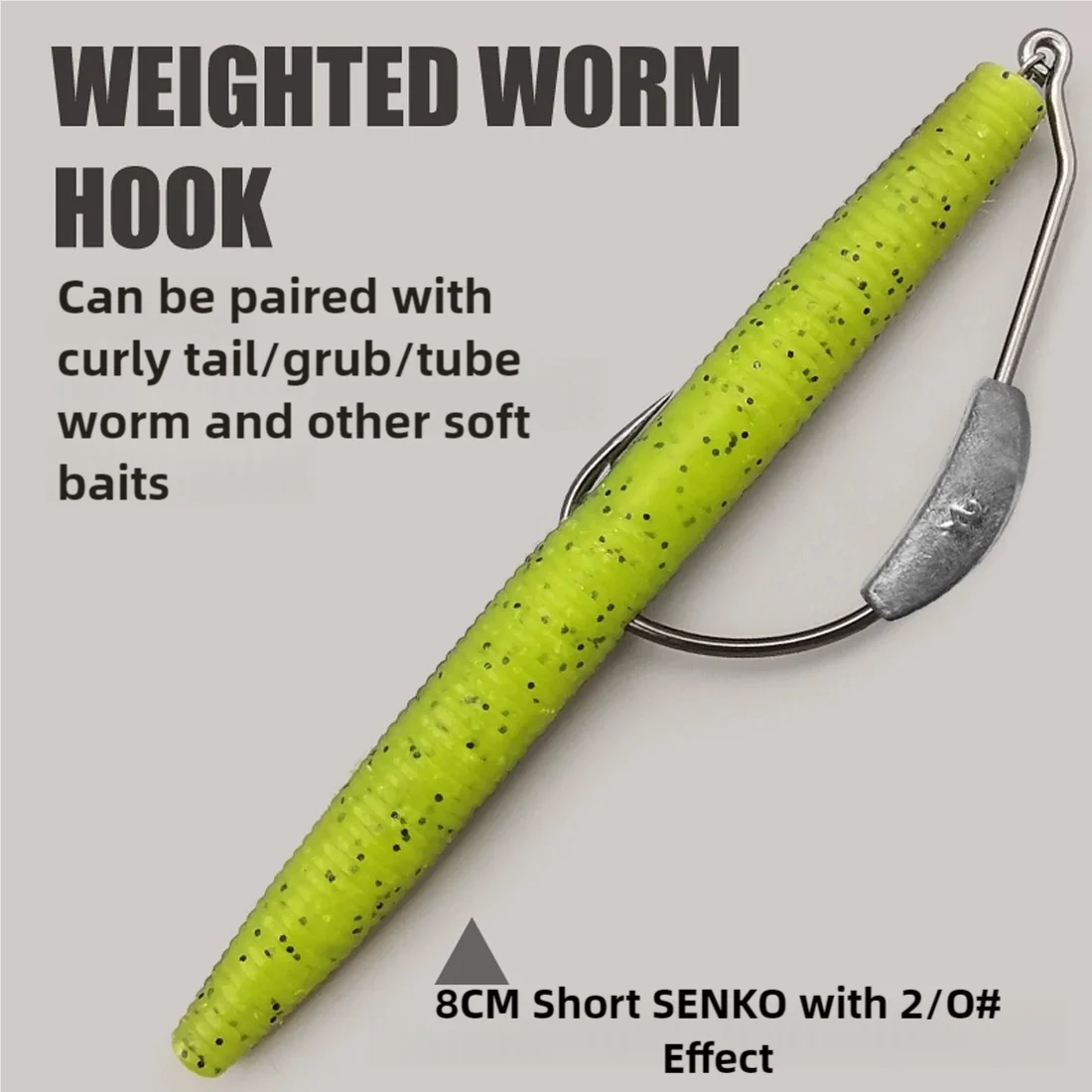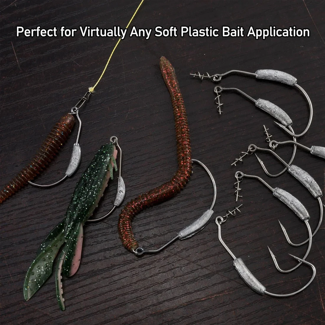 El diseño con peso de estos anzuelos mejora el control del lanzamiento, lo que le permite alcanzar la zona de golpe con un lanzamiento preciso después del lanzamiento, lo que los hace perfectos para cualquier aplicación de cebo de plástico blando.