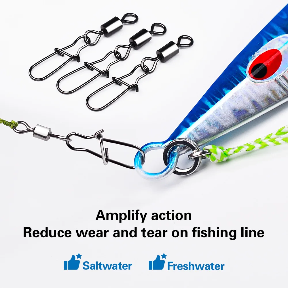 Gancho giratorio de acero inoxidable con Pin de refuerzo a presión, Conector de 8 anillos, accesorios de pesca, 100 piezas