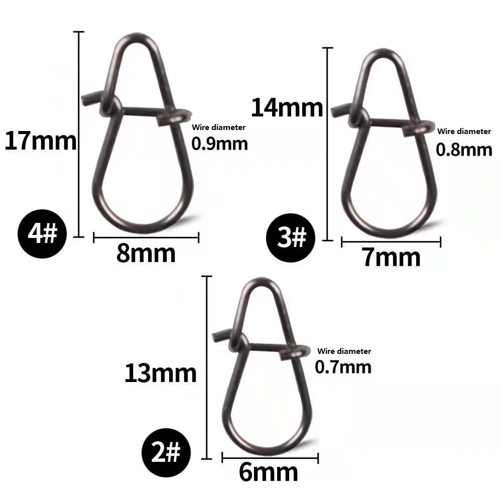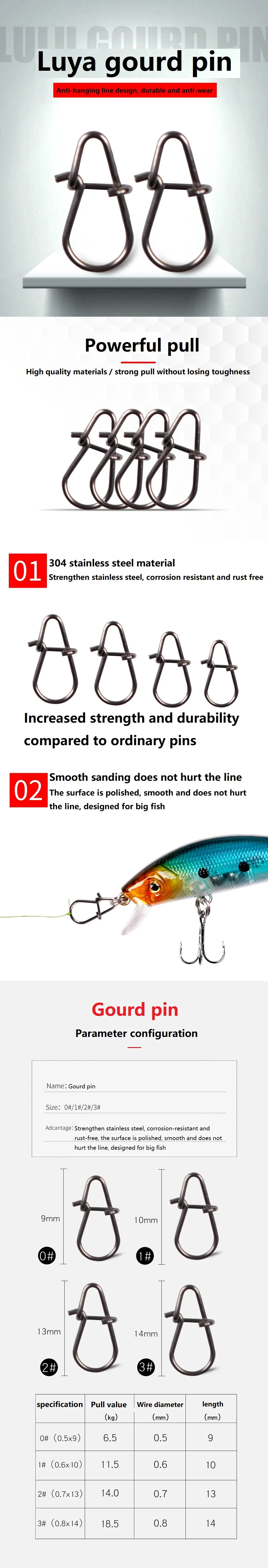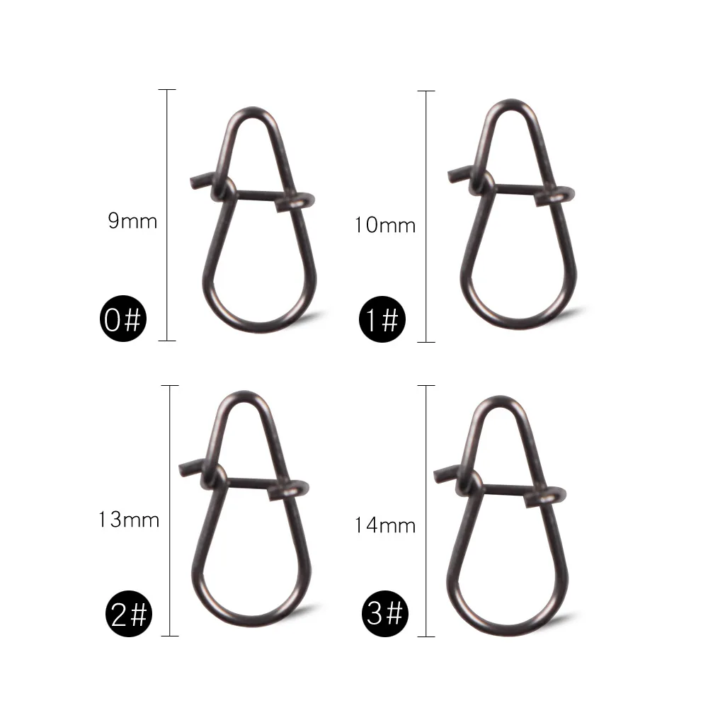 30-50 unids/bolsa, tipo calabaza, gancho de acero inoxidable, anillos sólidos giratorios, seguridad, SnapsFast Clip Lock, conector a presión, herramienta de aparejos de pesca