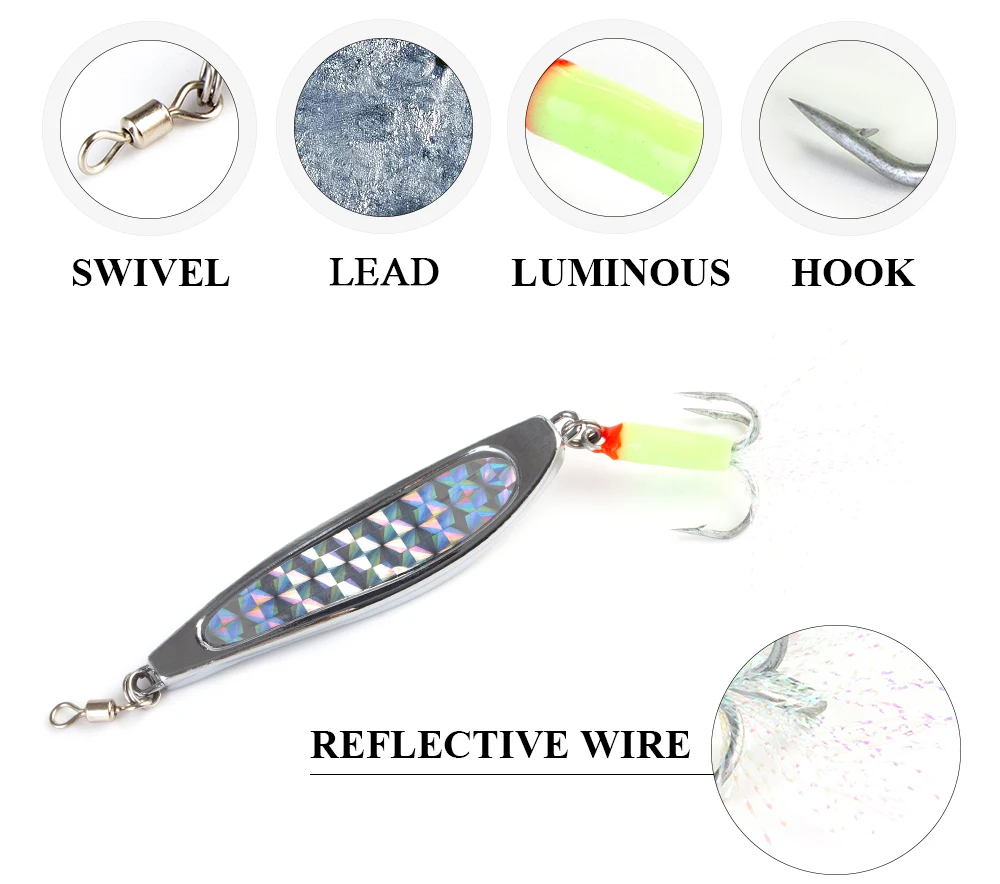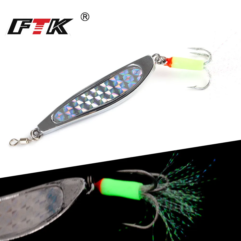 Gancho giratorio de alambre reflectante para agua salada y dulce, placa de Metal JIig de 60g/80g, recubrimiento luminoso, longitud 85mm/92mm, FTK, nuevo