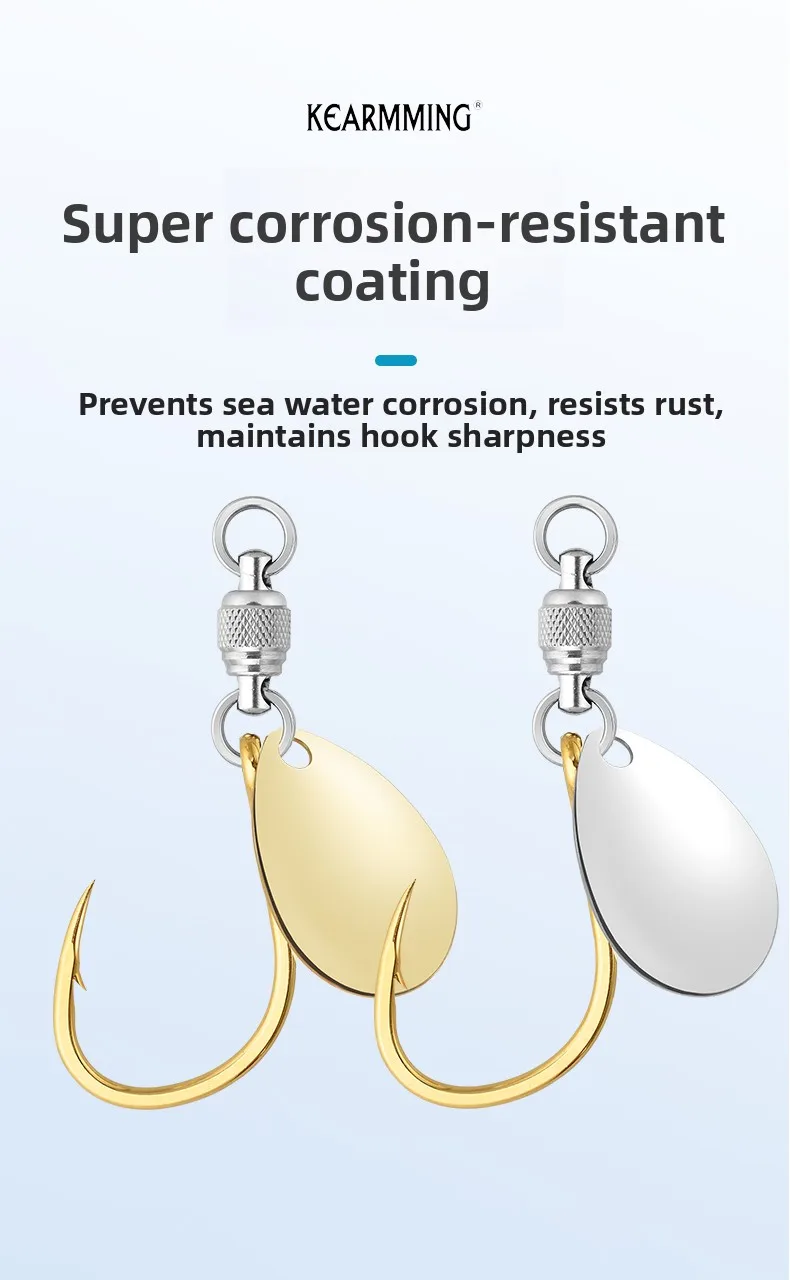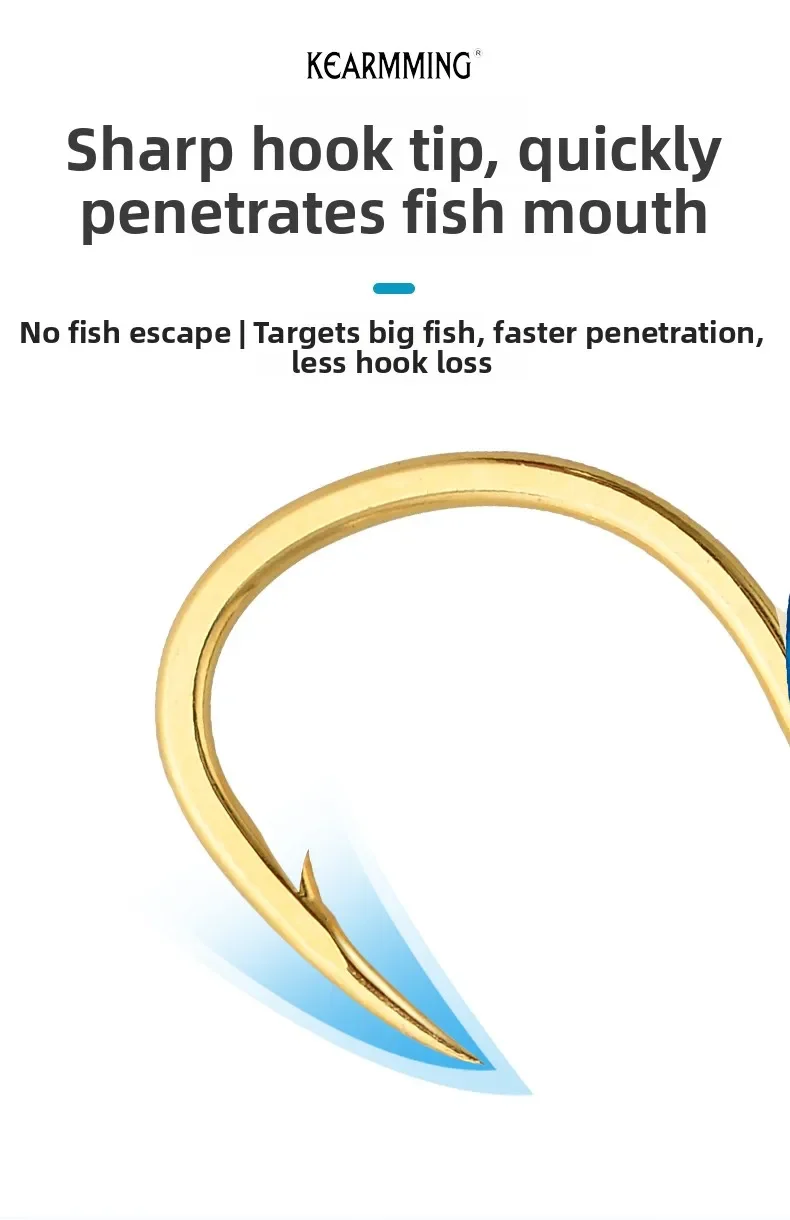 Elaborados mediante KEARMMING, estos anzuelos de pesca están hechos de materiales duraderos que garantizan longevidad y confiabilidad para sus viajes de pesca.