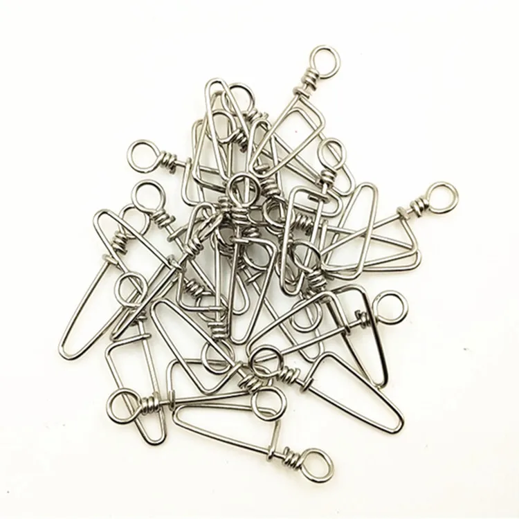 Gancho giratorio de seguridad para Pesca, accesorios de señuelo, Conector de barril de Pesca de acero inoxidable, 50 Uds.