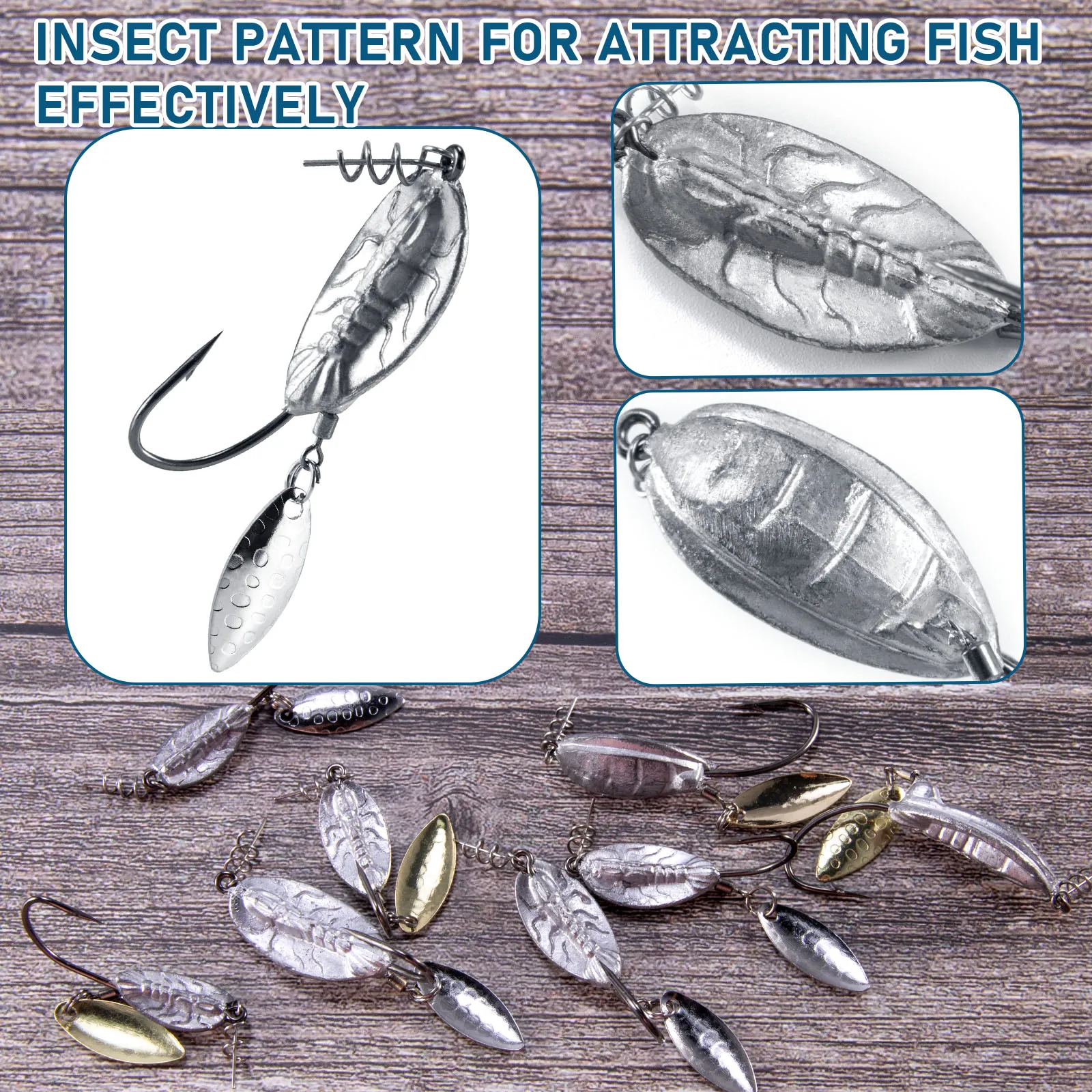 IMPLAZO EFECTIVO: Los anzuelos de pesca ponderados son beneficiosos para lanzamientos de largo alcance al destino.La superficie está grabada con un patrón de insectos para confundir al pez.La punta de anzuelo afilada puede perforar la presa fácilmente.