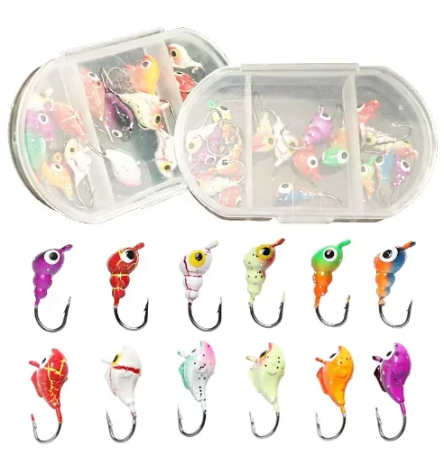 6 unids/set 0,5 ~ 1.3g señuelo de pesca en hielo de invierno ants en forma de cebo suave Artificial de colores cabeza de plantilla pequeño anzuelo de pesca en hielo para gusano señuelo