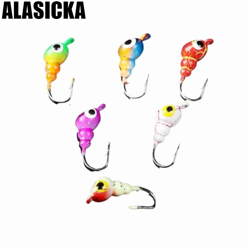 6 unids/set 0,5 ~ 1.3g señuelo de pesca en hielo de invierno ants en forma de cebo suave Artificial de colores cabeza de plantilla pequeño anzuelo de pesca en hielo para gusano señuelo