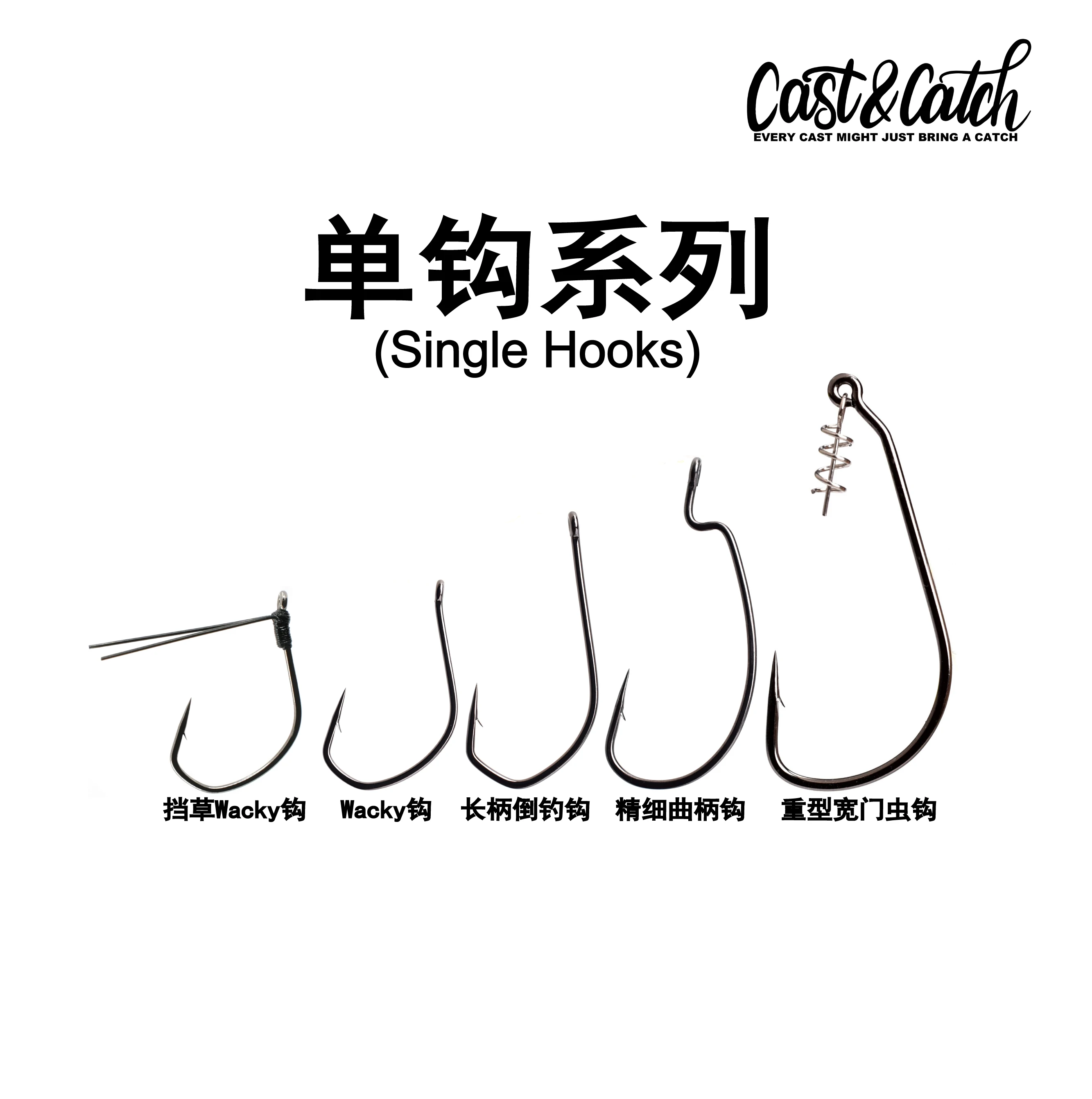 Gancho invertido de mango largo fundido y atrapa, anzuelo WACKY, anzuelo de manivela de vientre ancho fino con bloqueo de hierba, anzuelo WACKY, señuelo de pesca