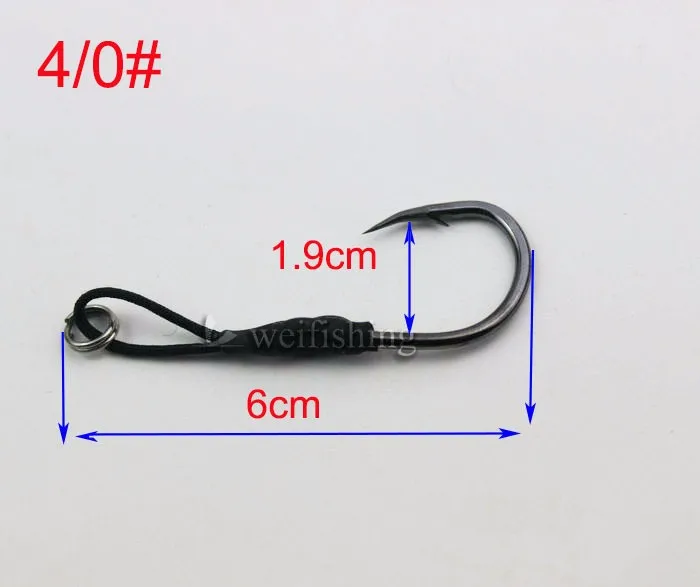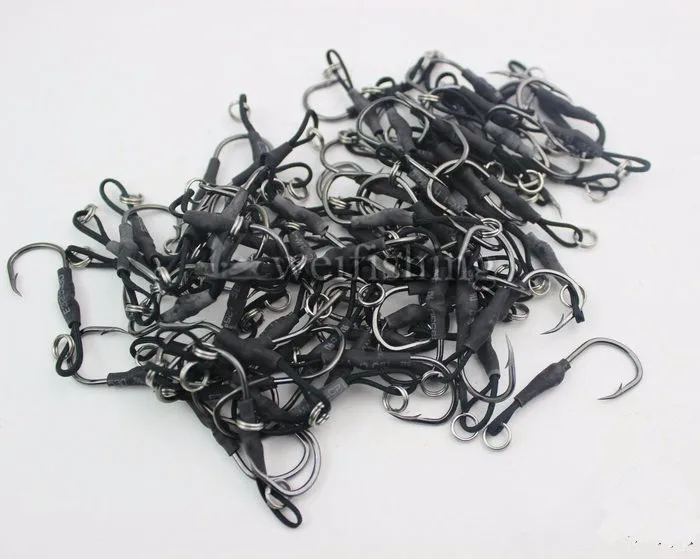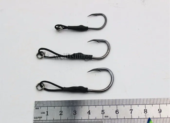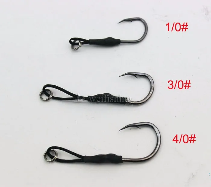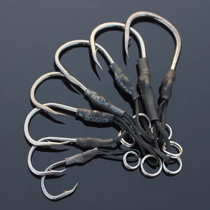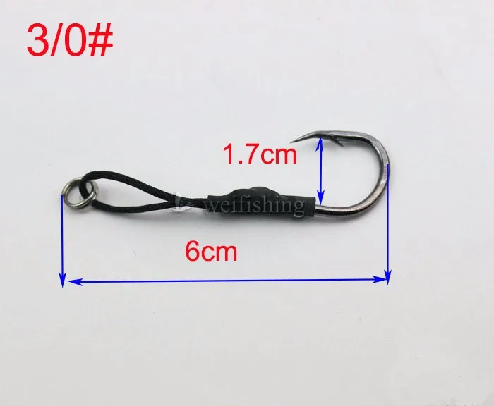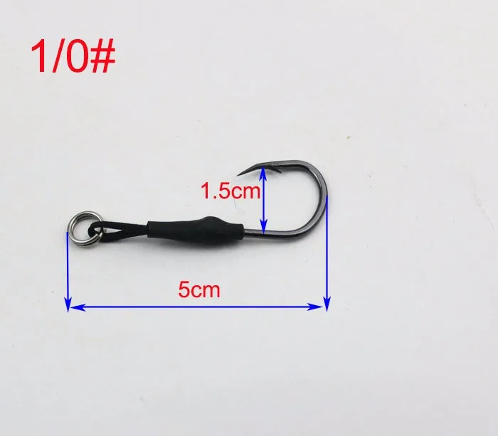 Gancho de cebo único con cuerda de amarre 1/0# Cuchara de pesca con púas, lote de ganchos para señuelos, 7 piezas