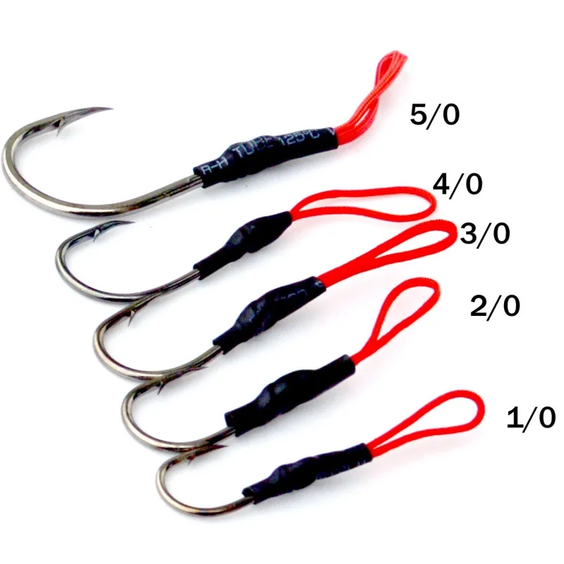 Gancho de cebo único con cuerda de amarre 1/0# Cuchara de pesca con púas, lote de ganchos para señuelos, 7 piezas